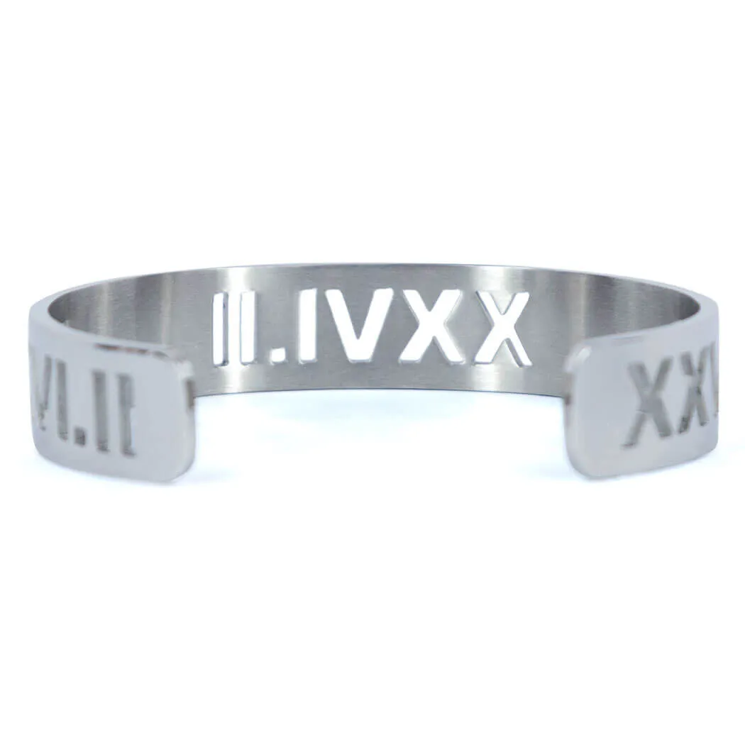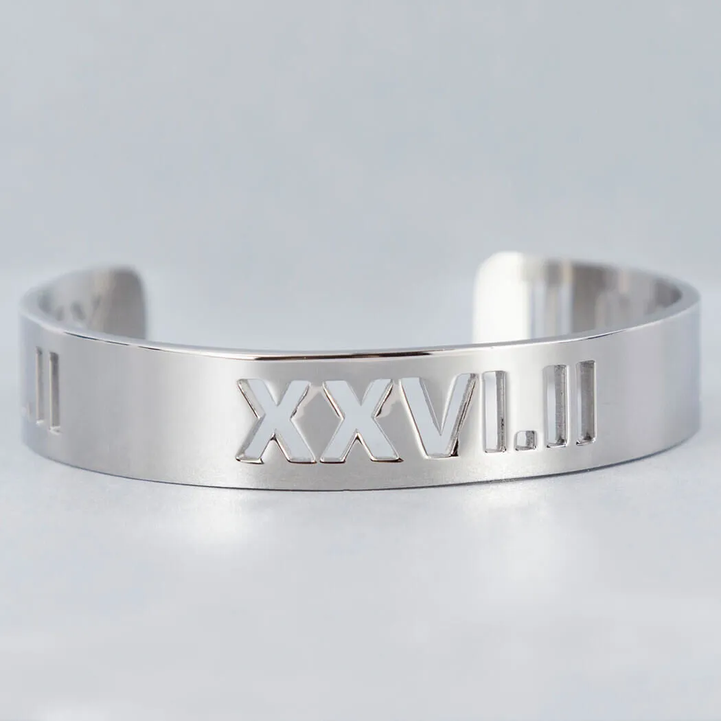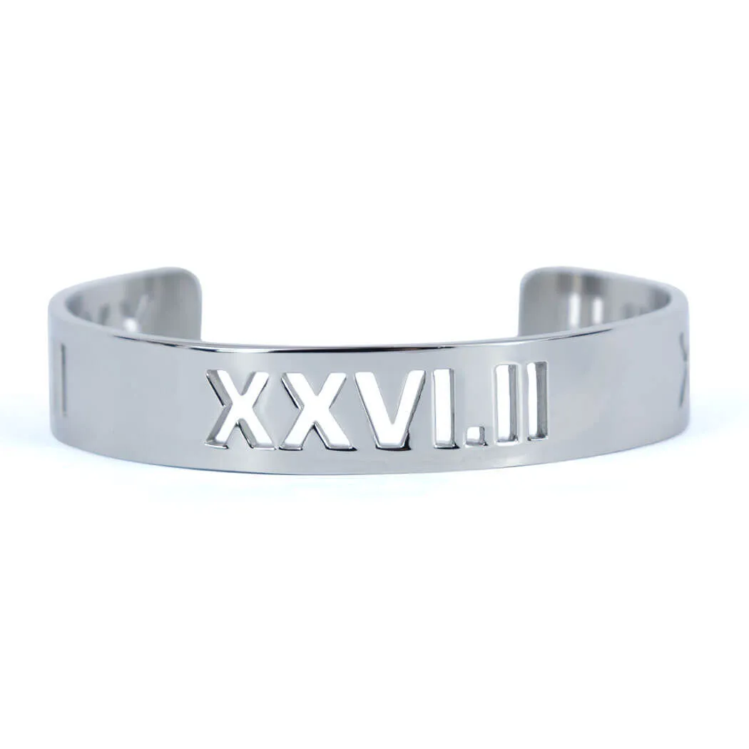 - EXCLUSIVE DESIGN: Cuff bracelet features a running milestone in Roman Numerals