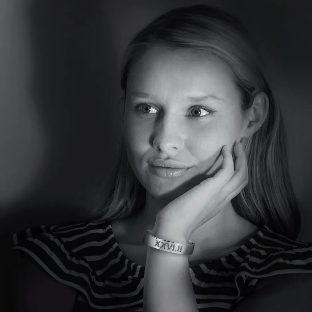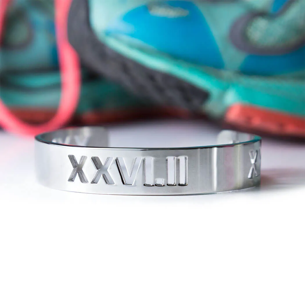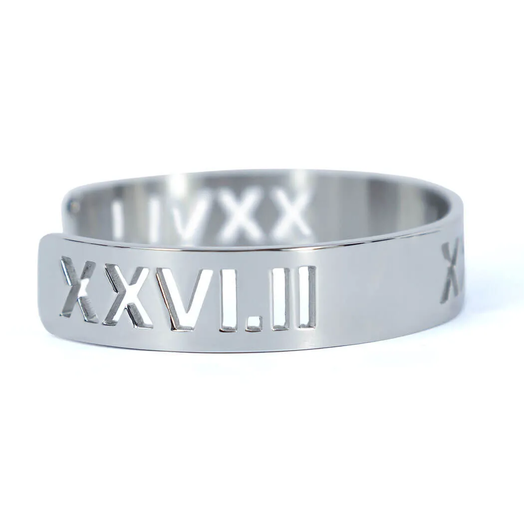 - EXCLUSIVE DESIGN: Cuff bracelet features a running milestone in Roman Numerals