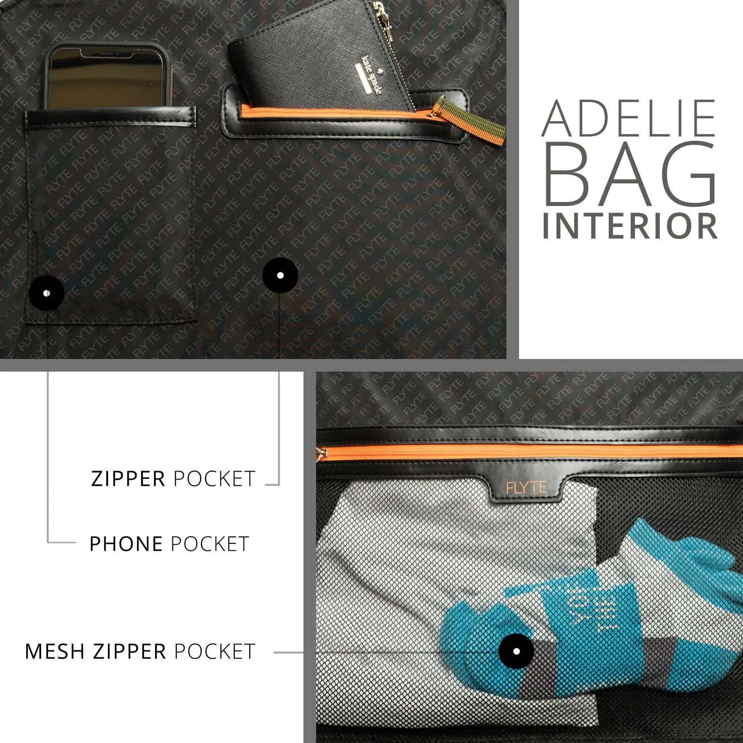 Adélie Bag was the first bag in the FLYTE bag collection and it is a trusted favorite. This is the ultimate ‘go to’ bag for travel, to the gym, or to work. The Adélie Bag offers lots of room and it is just the right size to comfortable carry. It has also been reviewed as ‘the best weekender bag’. This bag has features galore to conquer and divide your belongings into organized pockets and to make their quick retrieval a piece of cake. Don’t forget to pair your Adelie with our coordinating FLYTE bag accessory items that are now available.