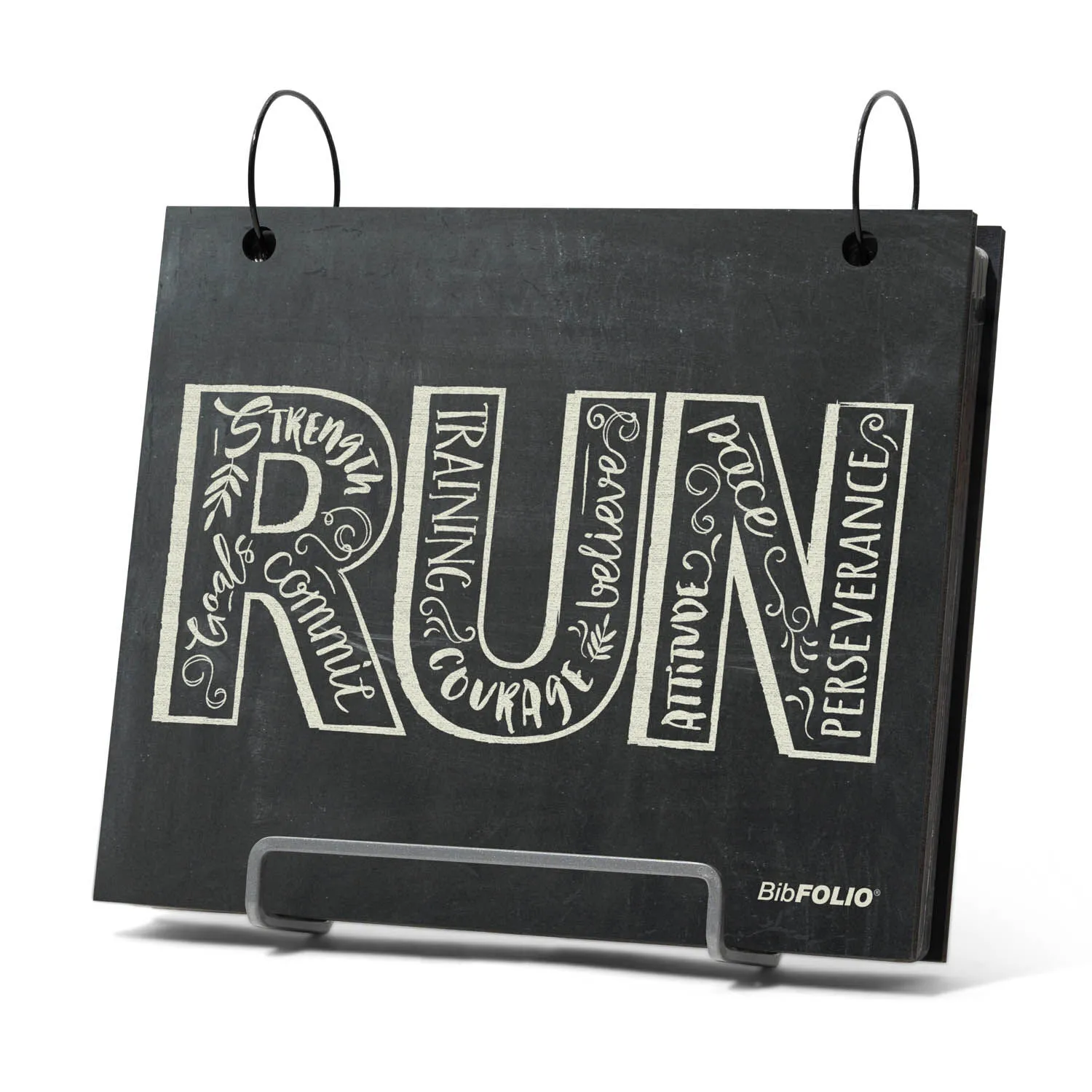 Our one-of-a-kind inspirational BibFOLIO® Race Bib Album is the perfect choice for any runner to archive, preserve, and display their hard-earned race bibs. With a great faux chalkboard look, the design will stand out among other pieces in any room of the house. Place the album on a table, a shelf, or desk – both at home or in the office to celebrate your running memories and achievements. Crafted from sturdy wood that is hand-finished and fitted with twist cable rings, each album is as functional as it is stylish. To add bibs, unscrew the rings and slide them through the holes at the top of the bib or protector sleeve (if used), and close the rings for a unique album runners will love and cherish. Perfect keepsake gift for a determined runner for any occasion.