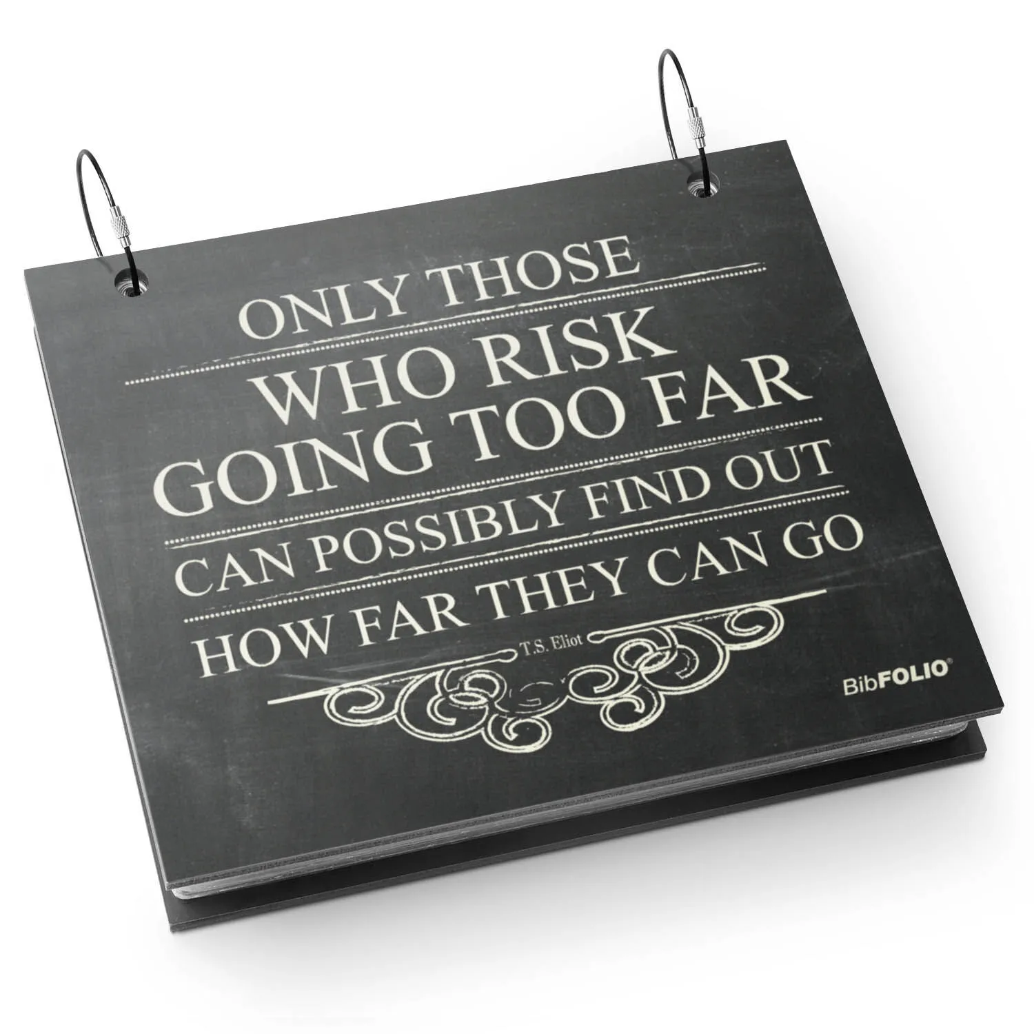 Our one-of-a-kind inspirational “Only Those Who Risk” BibFOLIO® Race Bib Album is the perfect choice for any runner to archive, preserve, and display their hard-earned race bibs. With a great faux chalkboard look, the design will stand out among other pieces in any room of the house. Place the album on a table, a shelf, or desk – both at home or in the office to celebrate your running memories and achievements. Crafted from sturdy wood that is hand-finished and fitted with twist cable rings, each album is as functional as it is stylish. To add bibs, unscrew the rings and slide them through the holes at the top of the bib or protector sleeve (if used), and close the rings for a unique album runners will love and cherish. Perfect keepsake gift for a determined runner for any occasion.