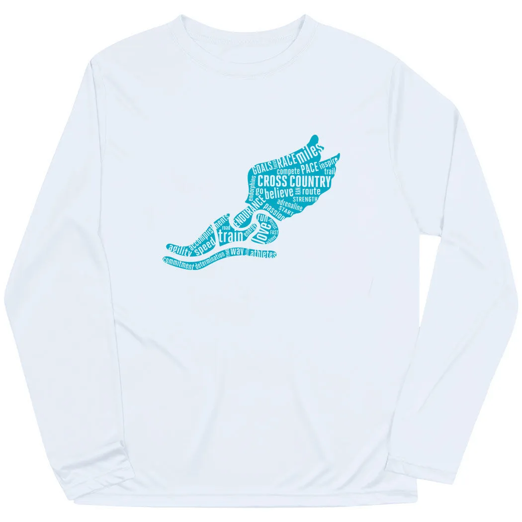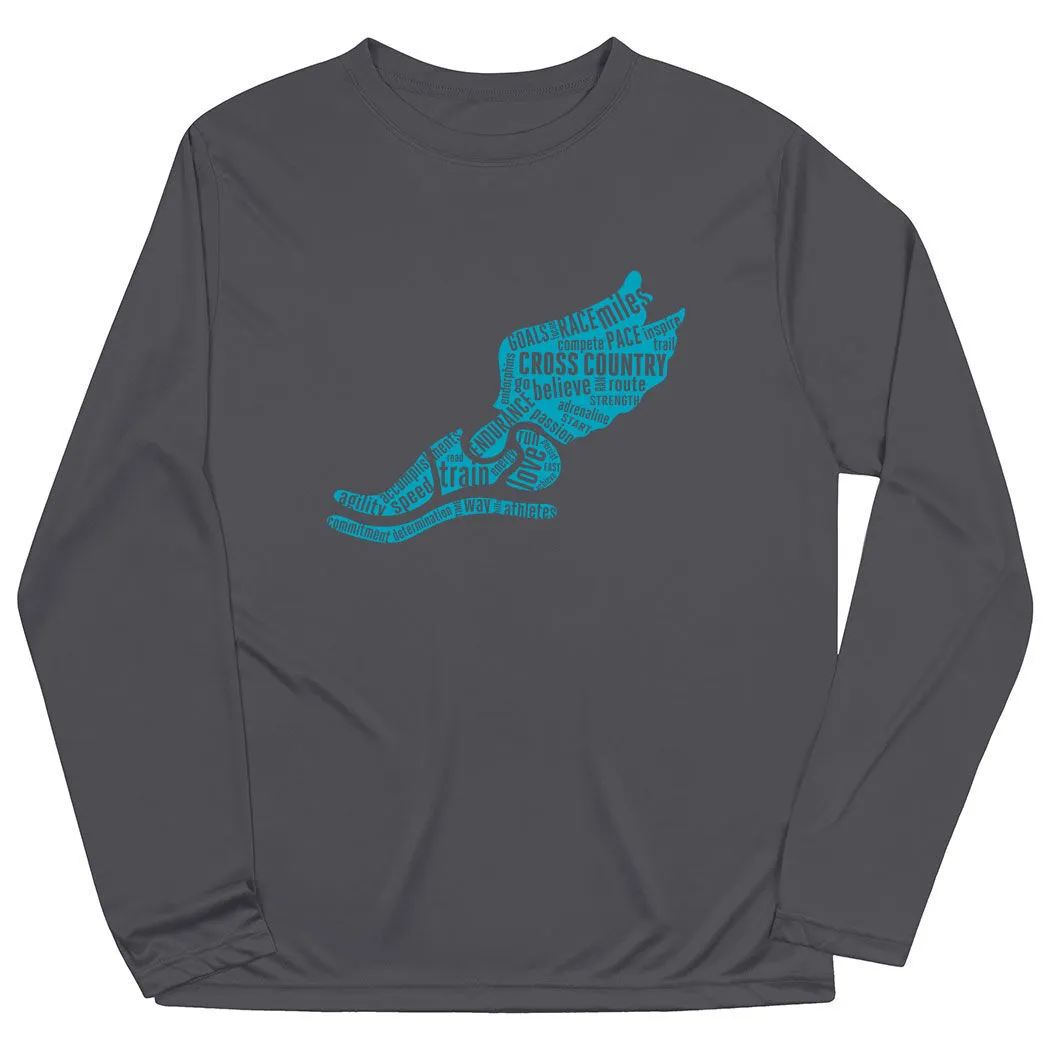 Gear up for practice, meet or any activity with our long sleeve tech tee with a running design, this is the perfect tee to show off that running pride. This moisture-wicking long sleeve athletic tech tee is great way to keep you dry during all activities or daily wear. With UV protection it will be sure to protect your skin as well. This shirt also makes for a great gift for any occasion.