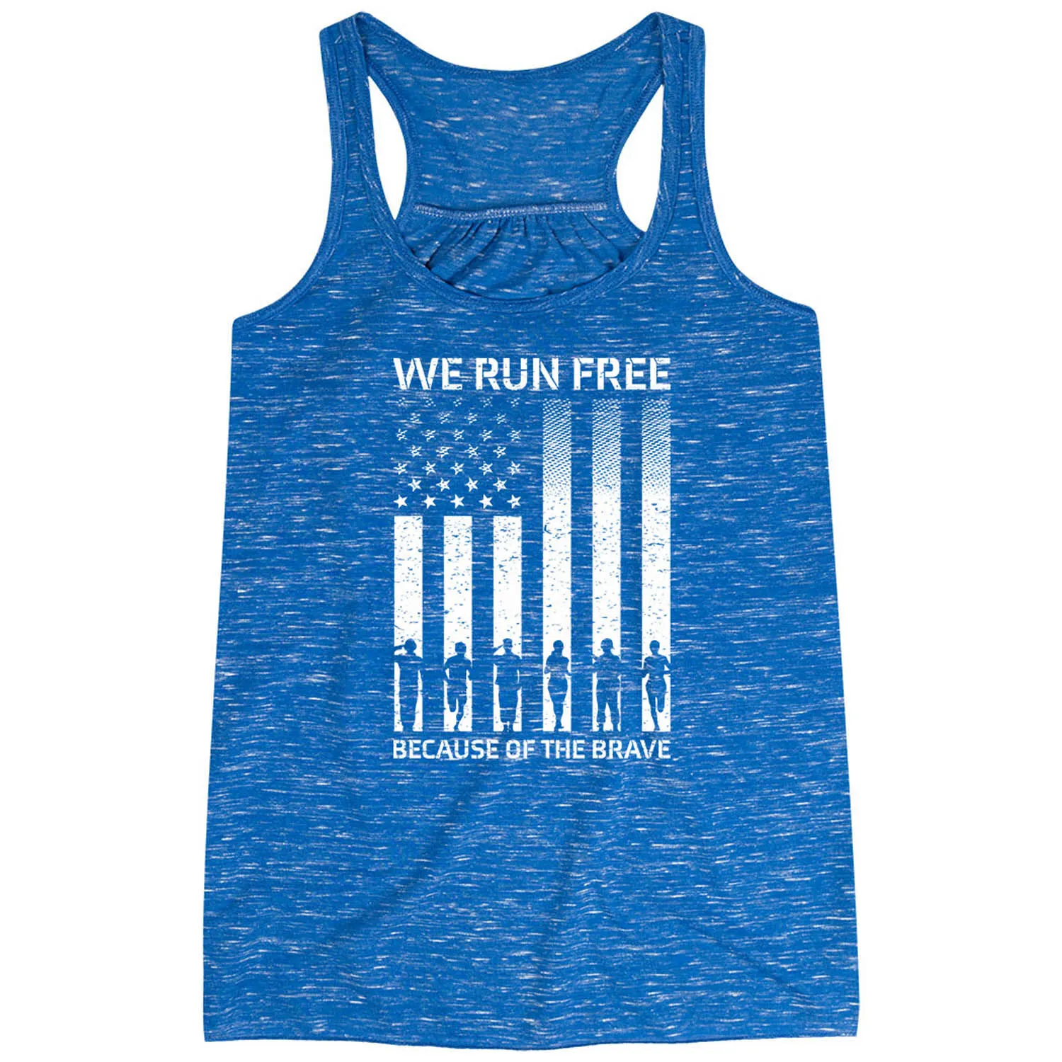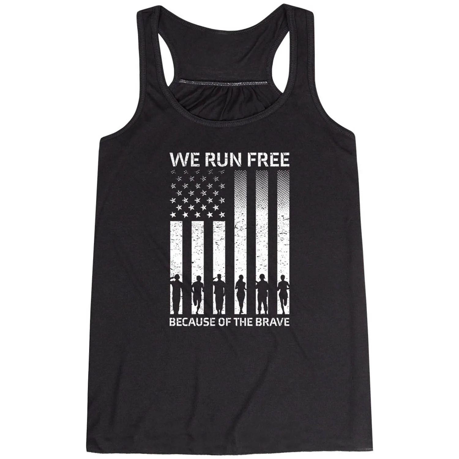 Our Because of the Brave flowy racerback tank top showcases a distinctive design that celebrates running and patriotism. It has a relaxed fit and is made from soft, lightweight material that’s ideal for spring and summer activities, but can also be layered for cooler seasons. This unique tank top pairs well with any bottom, whether it’s leggings, jeans, or shorts. Its stylish racerback design makes it a perfect choice for both patriotic races and everyday wear, and it’s an excellent gift idea for any runner.