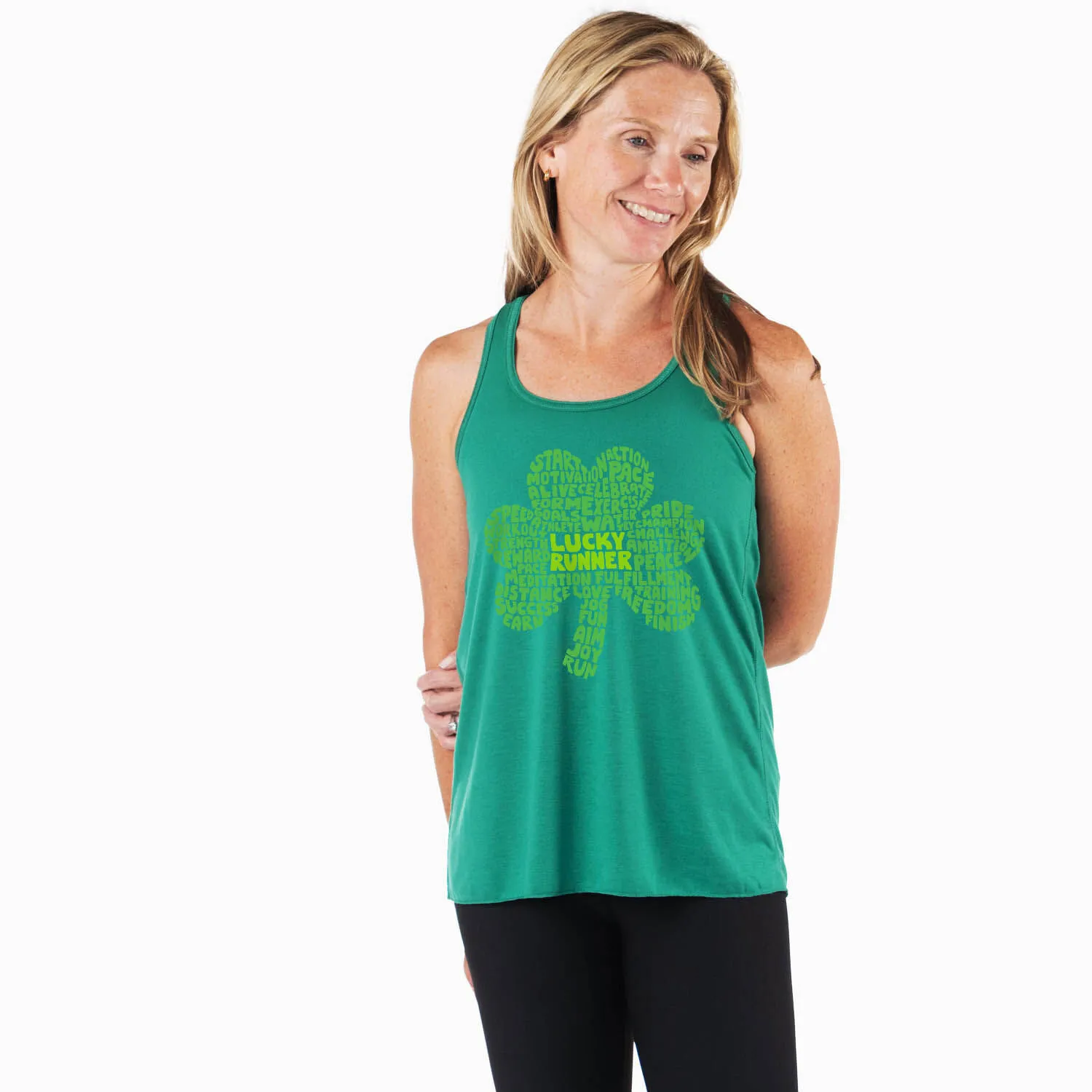 Celebrate St. Patrick’s Day in our flowy tank top featuring our exclusive Lucky Runner design. The relaxed tank is made from soft and lightweight material perfect for spring and summer activities, or as a layered outfit during colder seasons. Our unique tank top looks great when paired with any choice of bottoms from leggings and jeans to shorts. This stylish racerback tank top is perfect for St. Paddy’s festivities, everyday wear, and an ideal running gift for any occasion.