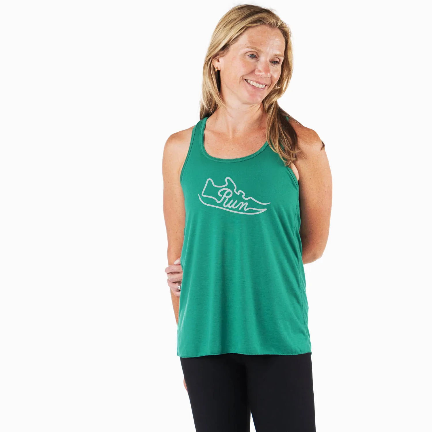 Show off your running pride in our flowy tank top featuring a one-of-a-kind Run Shoe design. The relaxed tank is made from soft and lightweight material perfect for spring and summer activities, or as a layered outfit during colder seasons. Our unique tank top looks great when paired with any choice of bottoms from leggings and jeans to shorts. This stylish racerback tank top is perfect for everyday wear and an ideal running gift for any occasion.