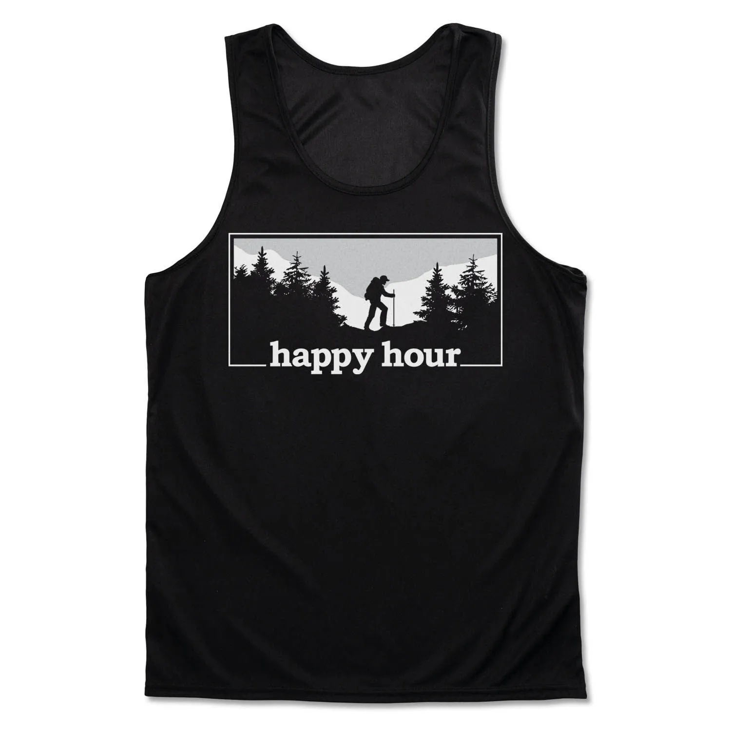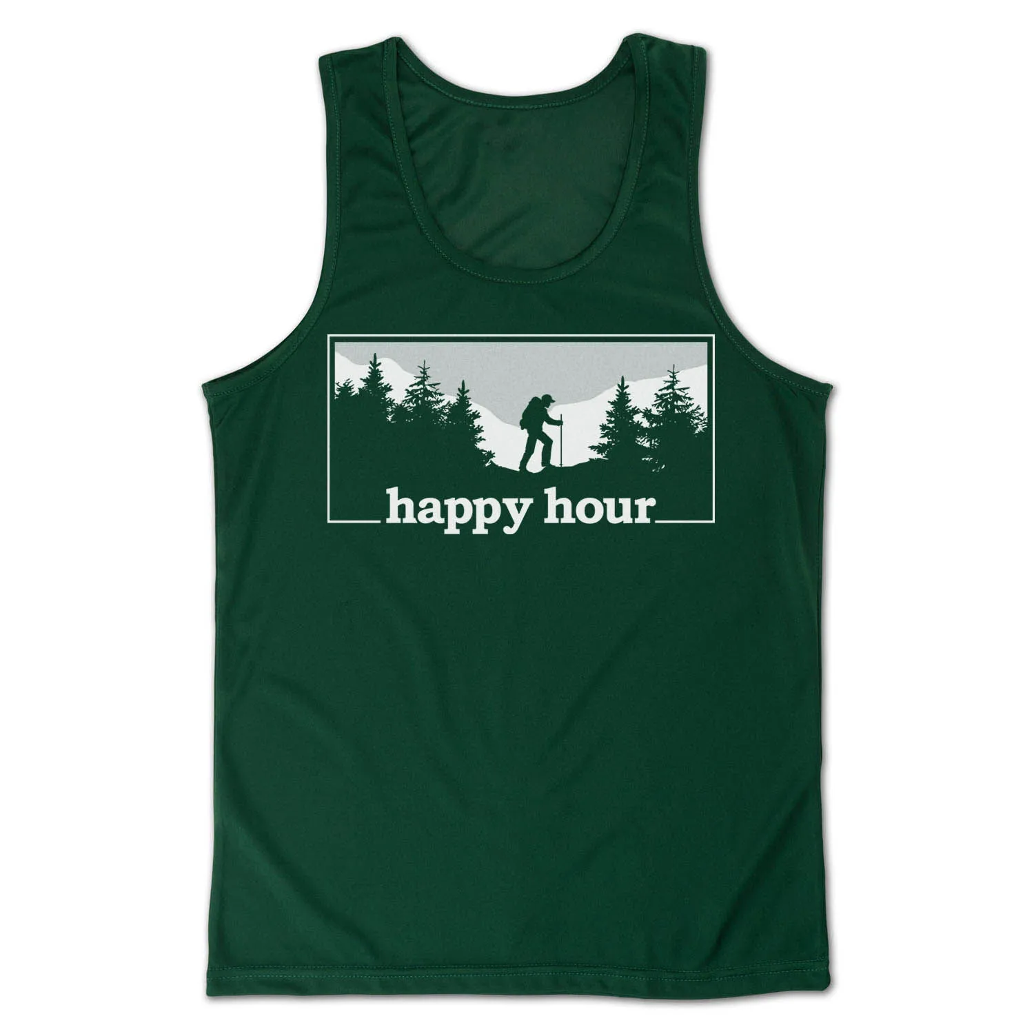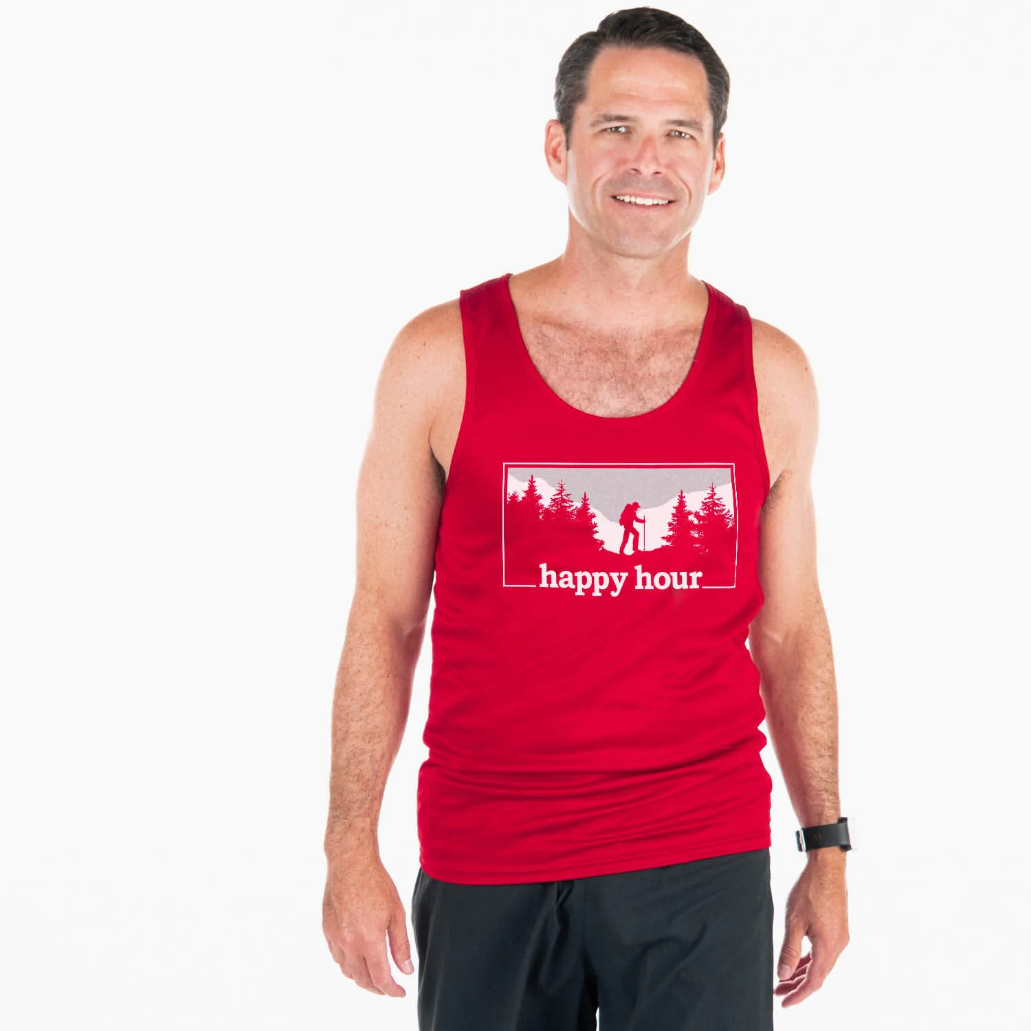 The hiking performance tank top for men features an exclusive Happy Hour Hiker design. Our moisture-wicking tank is made from 100% polyester to keep hikers dry and cool. The tank top offers a comfortable and relaxed fit that looks great when paired with any choice of athletic or everyday bottoms. This performance tank top for is perfect for everyday wear and an ideal gift for hikers for any occasion.