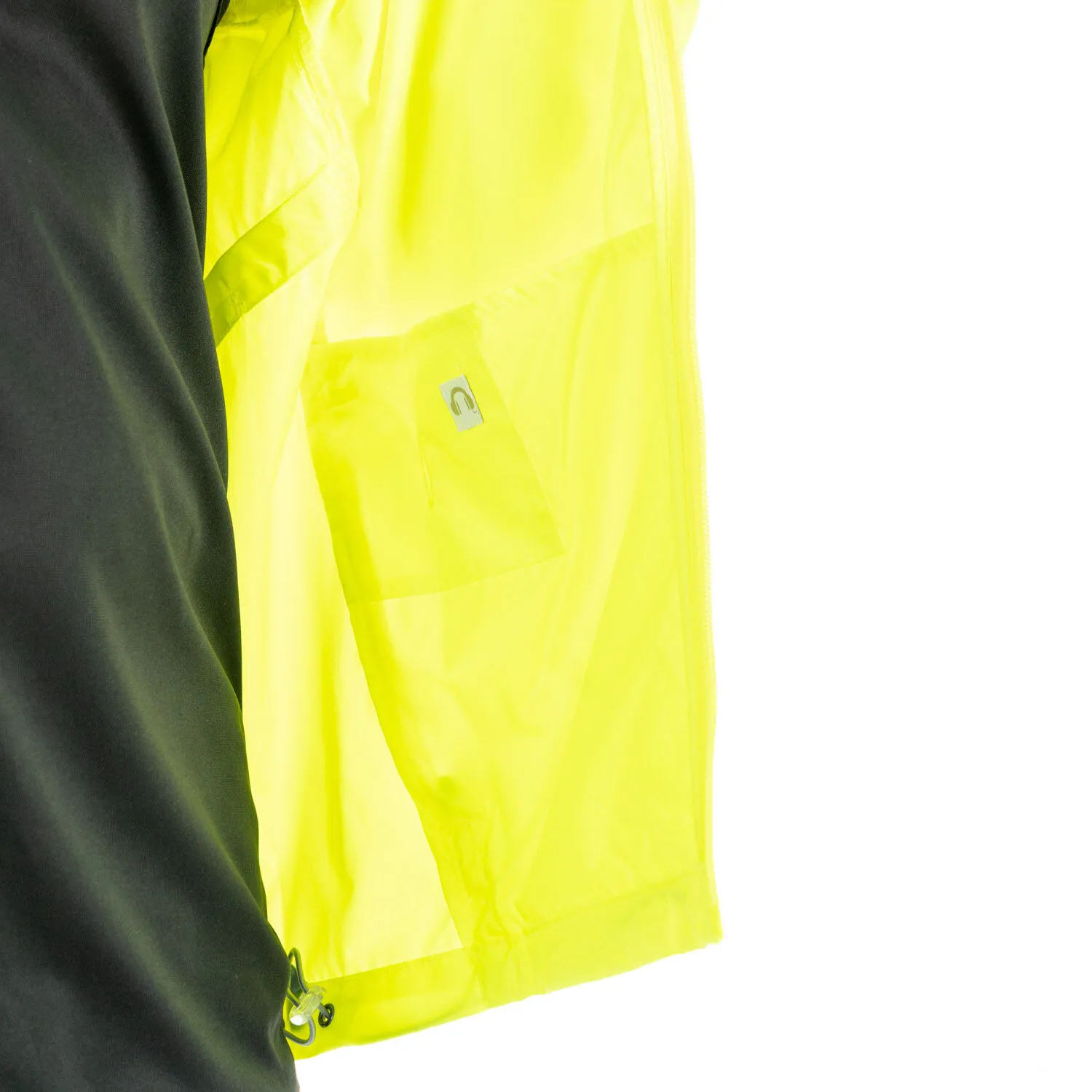 This Marathon lightweight jacket offers safety and comfort for every runner. Our 100% polyester safety yellow jacket features center front reverse coil autolock zipper with reflective toggle, underarm vents, lower front concealed zippered pockets with reflective toggles, audio port access through inside lower left pocket, elasticized cuffs, adjustable shockcord at hem, as well as reflective piping at shoulder yoke and center back yoke. Every runner values comfort and extra safety while out on a run.