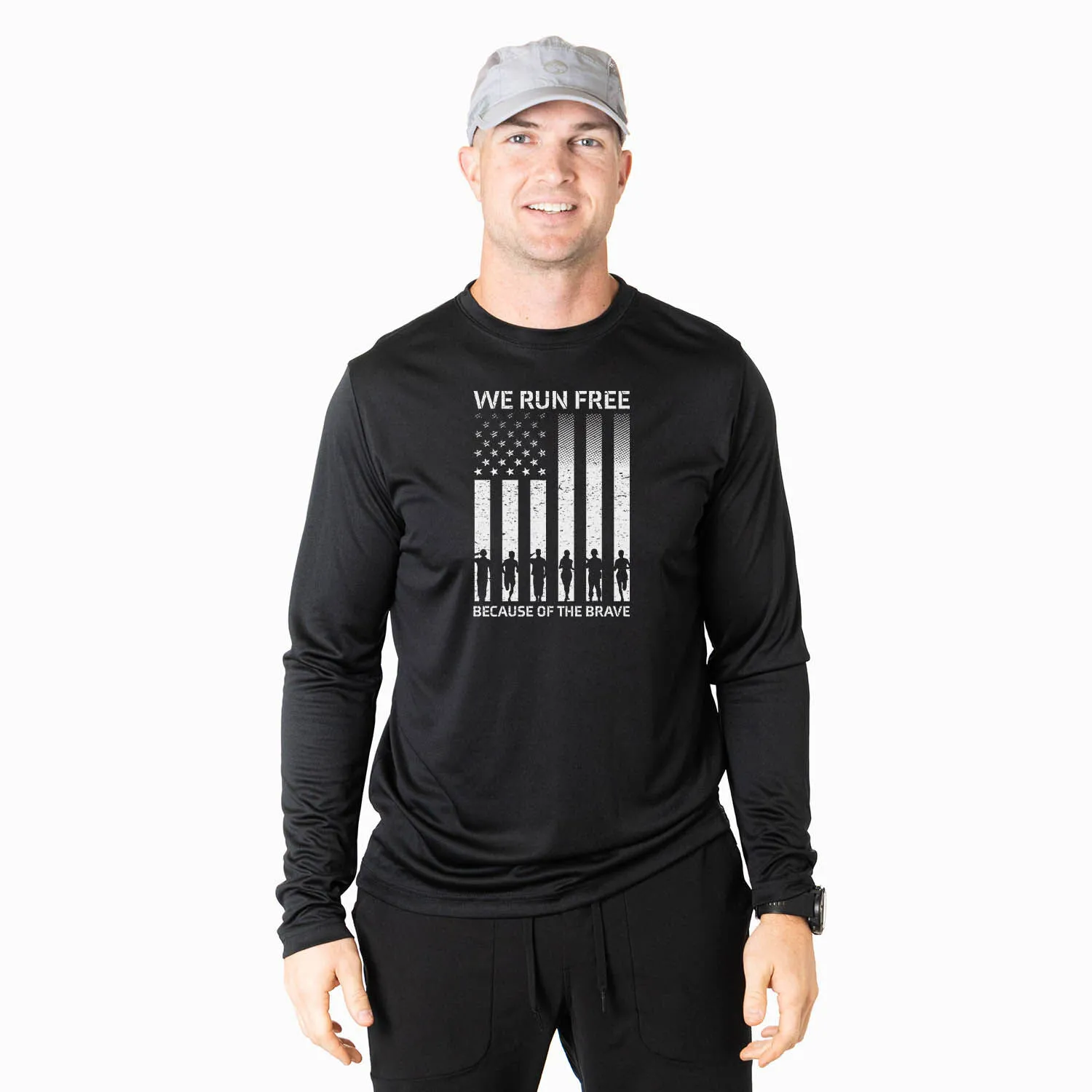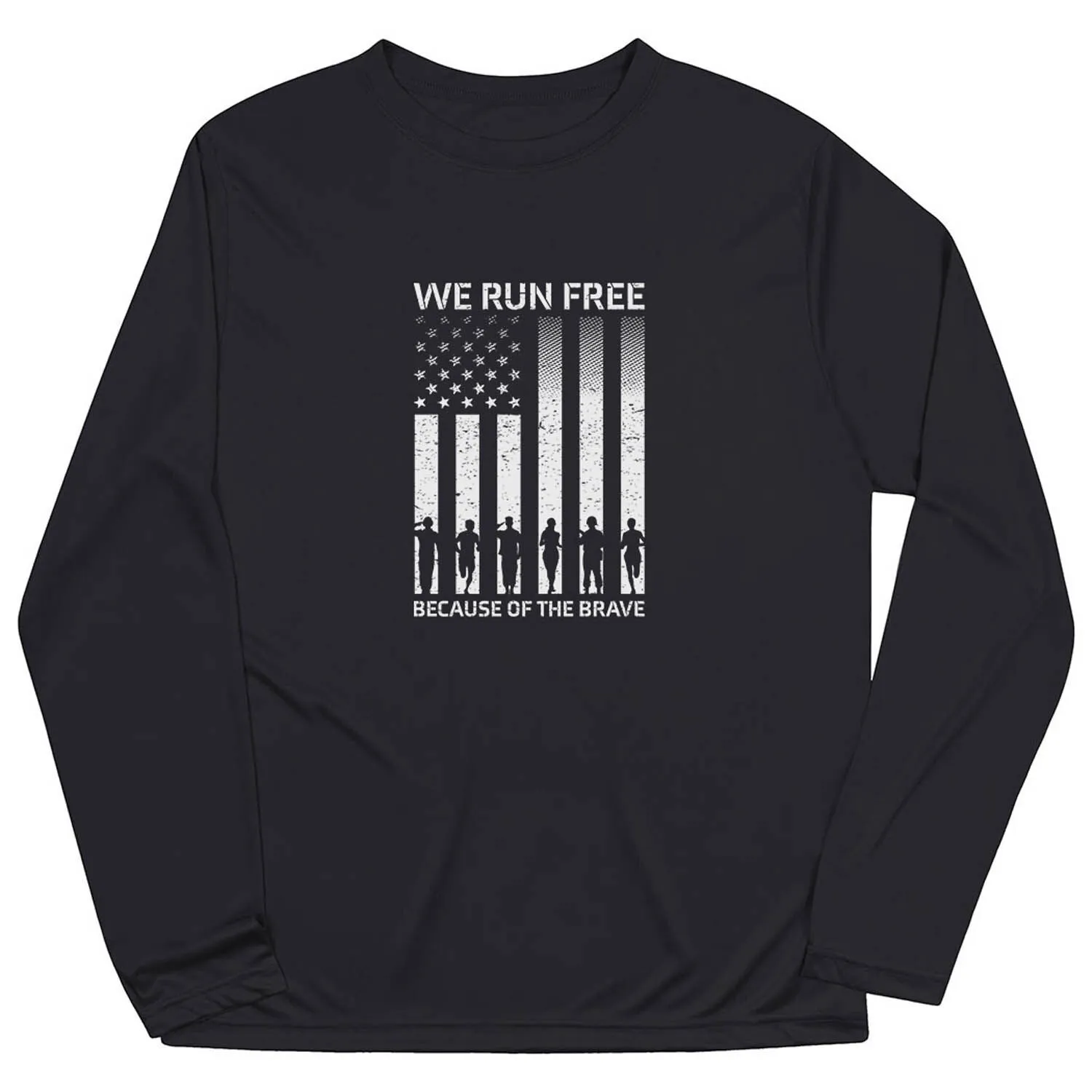 Unleash your patriotism with our Because of the Brave men’s long sleeve performance tee. This exclusive tech tee is perfect for adding a touch of personality to your running wardrobe. Featuring an exclusive and exciting design, this tee is made from 100% polyester interlock that keeps you dry and cool while you’re working up a sweat. The relaxed fit of this long sleeve tech tee allows you to pair it with any athletic or everyday bottoms for a versatile and stylish look. Show off your love for your country with this unique tech tee that’s perfect for patriotic races, everyday wear, and makes for an amazing running gift for any occasion.