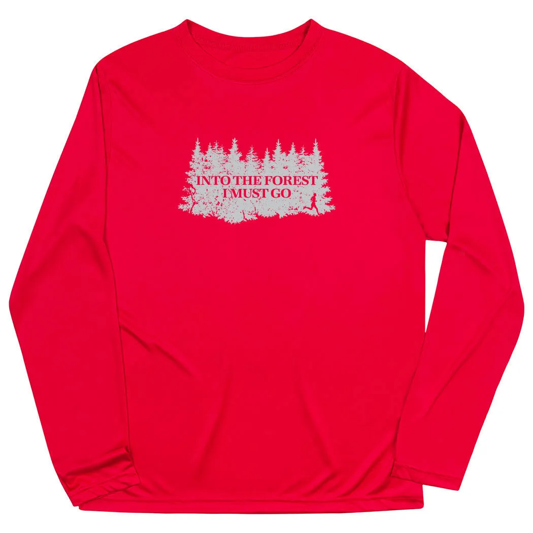 Show off your running pride in our men’s long sleeve performance tee featuring our exclusive Into the Forest I Must Go Running design. Our long sleeve tech tee is made from 100% polyester interlock to keep runners dry and cool. The long sleeve performance tee offers a comfortable and relaxed fit that looks great when paired with any choice of athletic or everyday bottoms. This unique tech tee is perfect for everyday wear and an ideal running gift for any occasion.