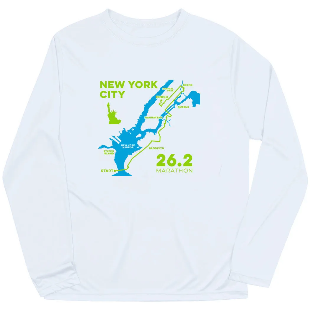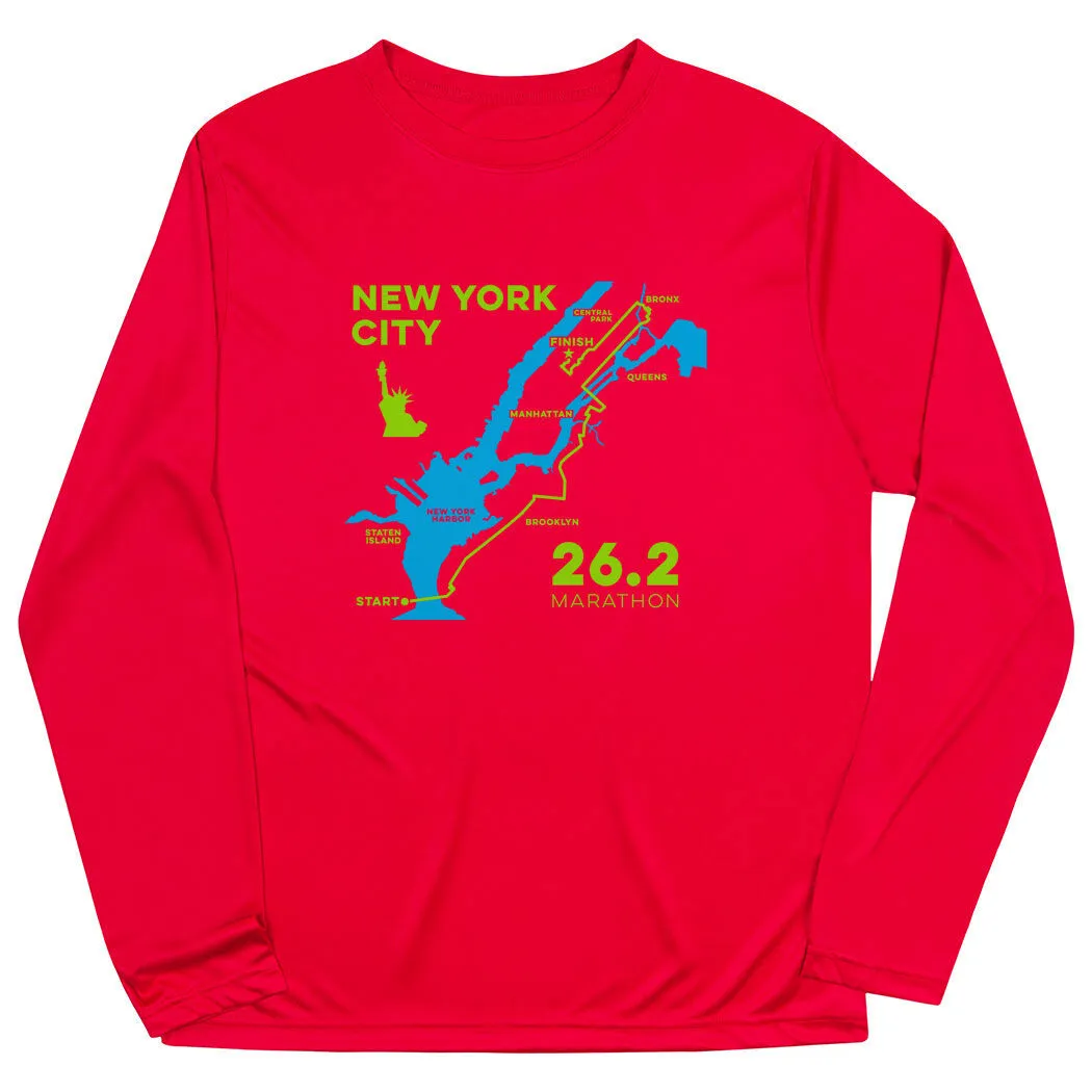 Show off your New York running pride in our men’s long sleeve performance tee. Our long sleeve tech tee is made from 100% polyester interlock to keep runners dry and cool. The long sleeve performance tee offers a comfortable and relaxed fit that looks great when paired with any choice of athletic or everyday bottoms. This unique tech tee is perfect for everyday wear and an ideal running gift for any occasion. Cross the NYC finish line in style.