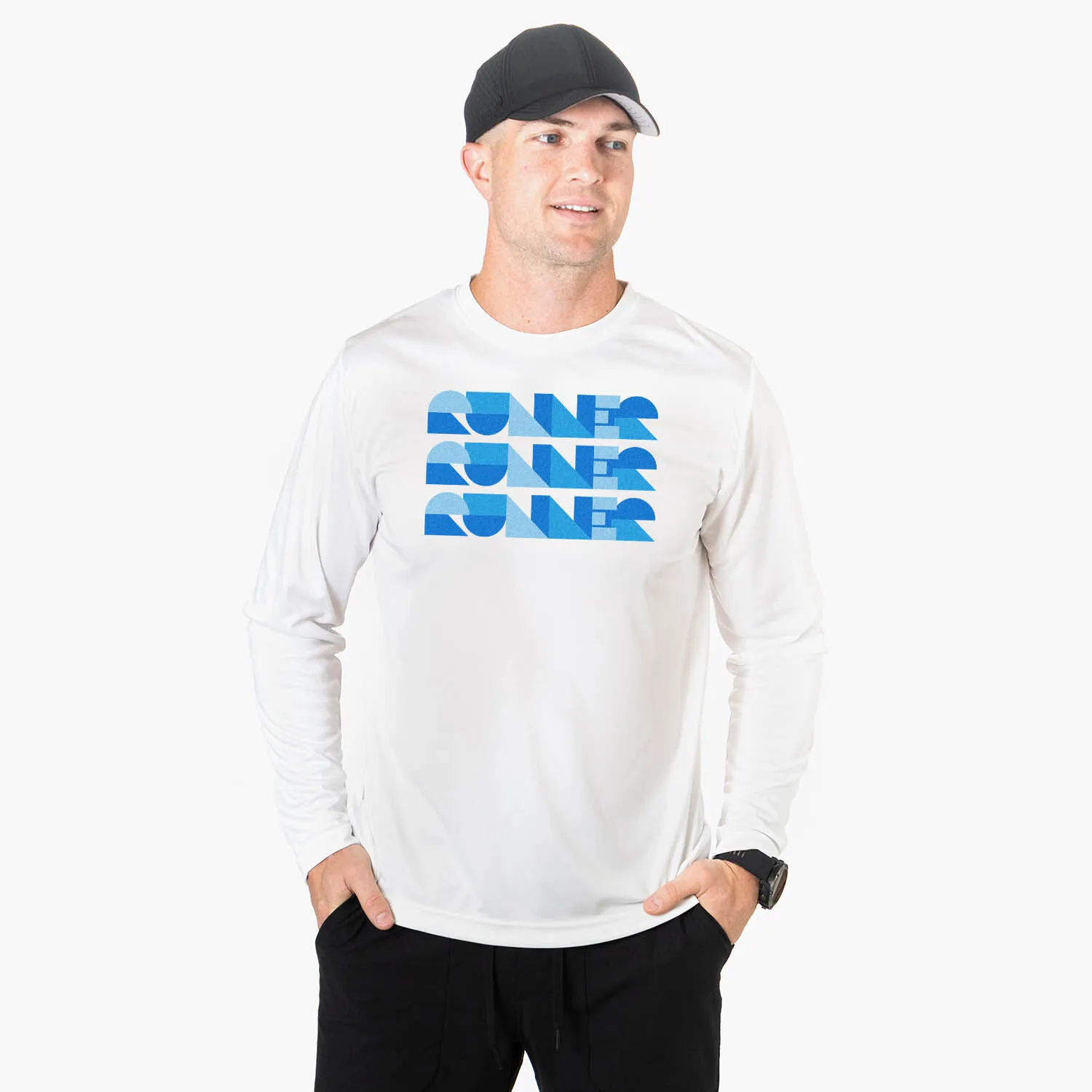 Show off your runner pride in our men’s long sleeve performance tee featuring our exclusive Run Repeat design. Our long sleeve tech tee is made from 100% polyester interlock to keep runners dry and cool. The long sleeve performance tee offers a comfortable and relaxed fit that looks great when paired with any choice of athletic or everyday bottoms. This unique tech tee is perfect for everyday wear and an ideal running gift for any occasion.