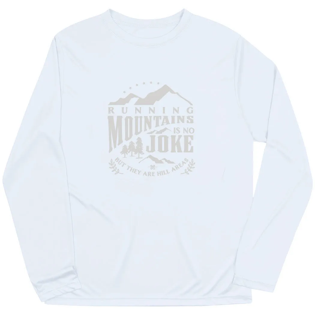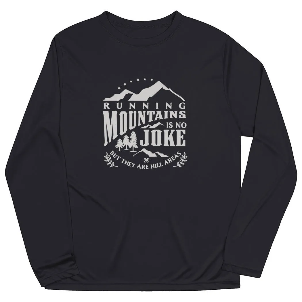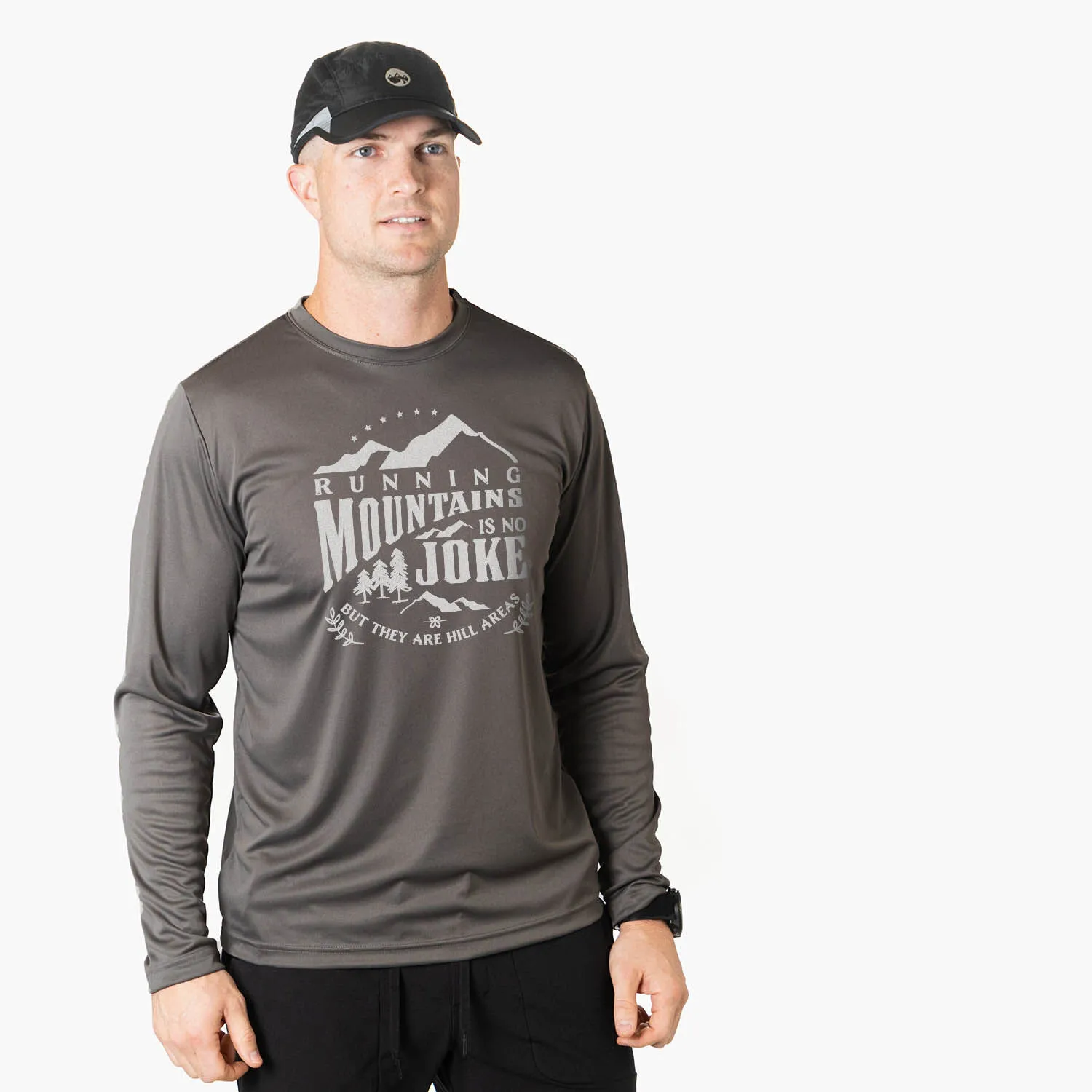 Running mountains is no joke – don’t be afraid to discover those hill[areas] in our men’s long sleeve performance tee. Our long sleeve tech tee is made from 100% polyester interlock to keep runners dry and cool. The long sleeve performance tee offers a comfortable and relaxed fit that looks great when paired with any choice of athletic or everyday bottoms. This unique tech tee is perfect for everyday wear and an ideal running gift for any occasion.