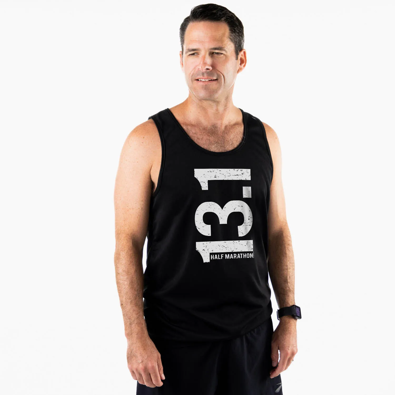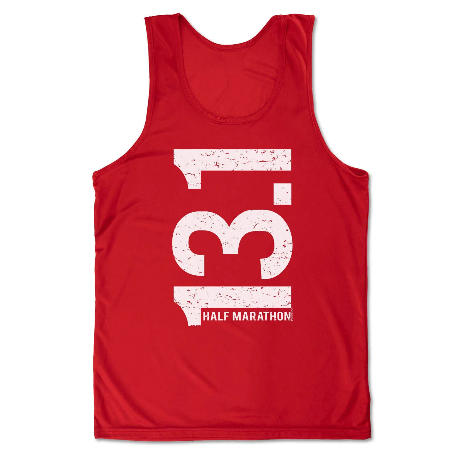 The running performance tank top for men features an exclusive 13.1 Half Marathon design. Our moisture-wicking tank is made from 100% polyester to keep runners dry and cool. The tank top offers a comfortable and relaxed fit that looks great when paired with any choice of athletic or everyday bottoms. This performance tank top for is perfect for everyday wear and an ideal gift for half marathoners for any occasion.
