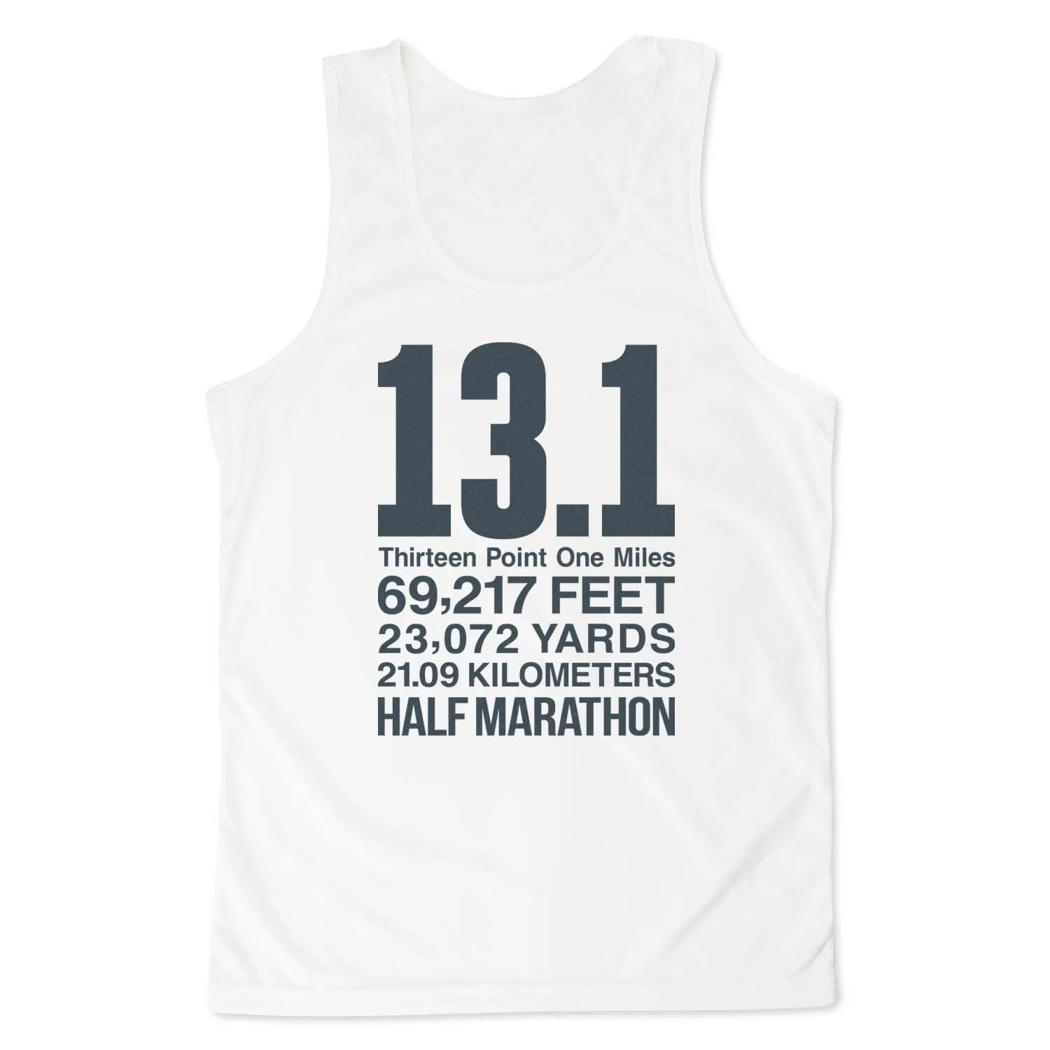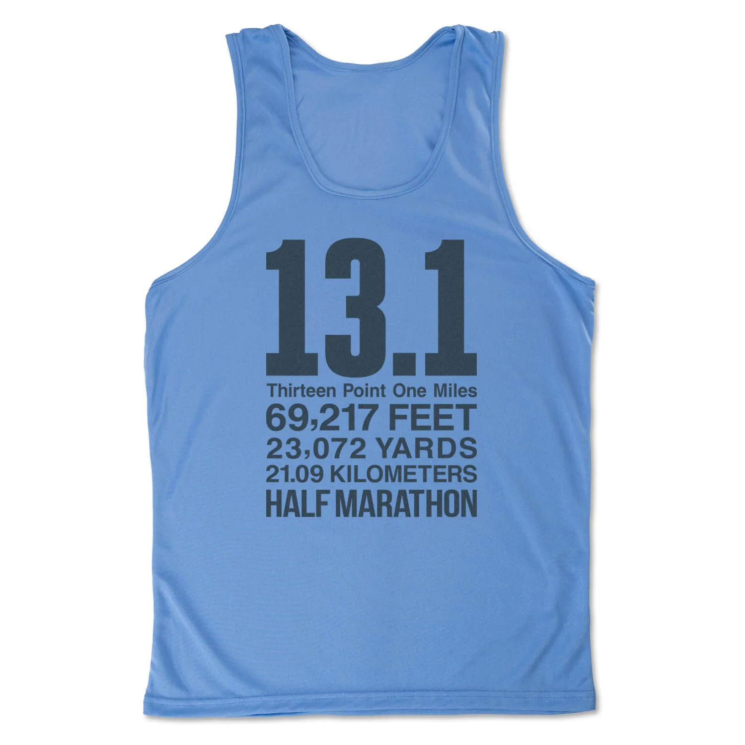 The running performance tank top for men features an exclusive 13.1 Math Miles design. Our moisture-wicking tank is made from 100% polyester to keep runners dry and cool. The tank top offers a comfortable and relaxed fit that looks great when paired with any choice of athletic or everyday bottoms. This performance tank top for is perfect for everyday wear and an ideal running gift for any occasion.