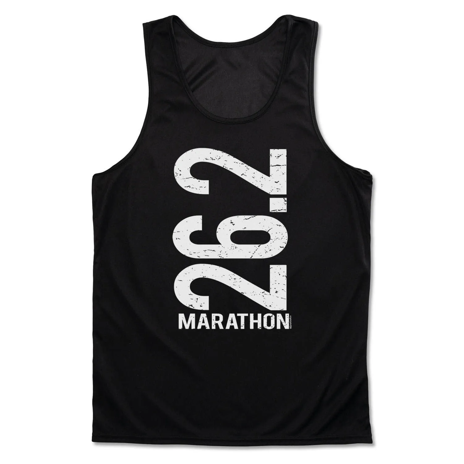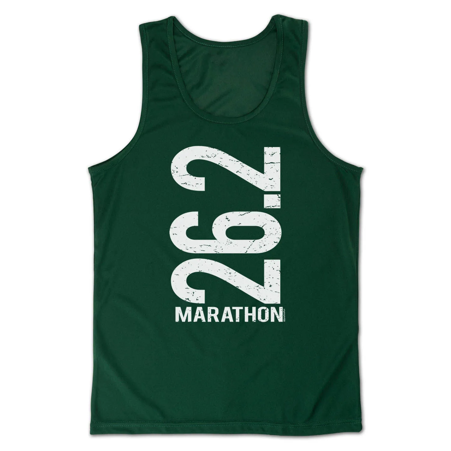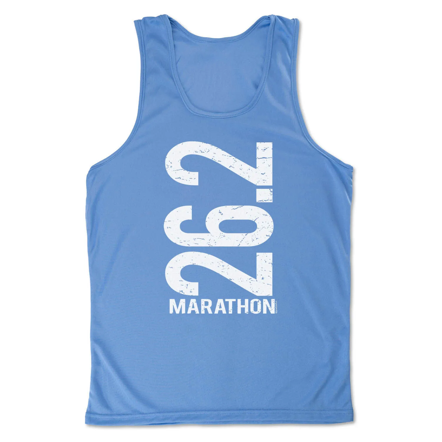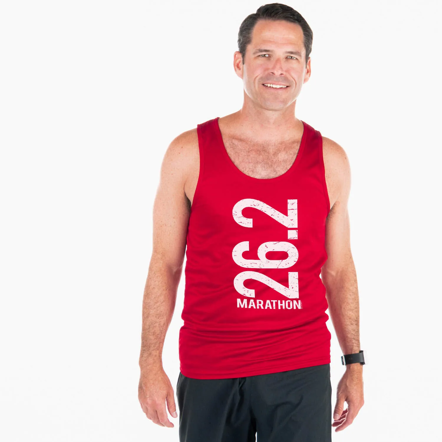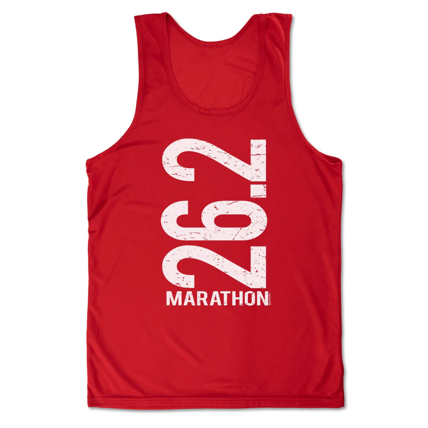 The running performance tank top for men features an exclusive 26.2 Marathon design. Our moisture-wicking tank is made from 100% polyester to keep runners dry and cool. The tank top offers a comfortable and relaxed fit that looks great when paired with any choice of athletic or everyday bottoms. This performance tank top for is perfect for everyday wear and an ideal gift for marathoners for any occasion.