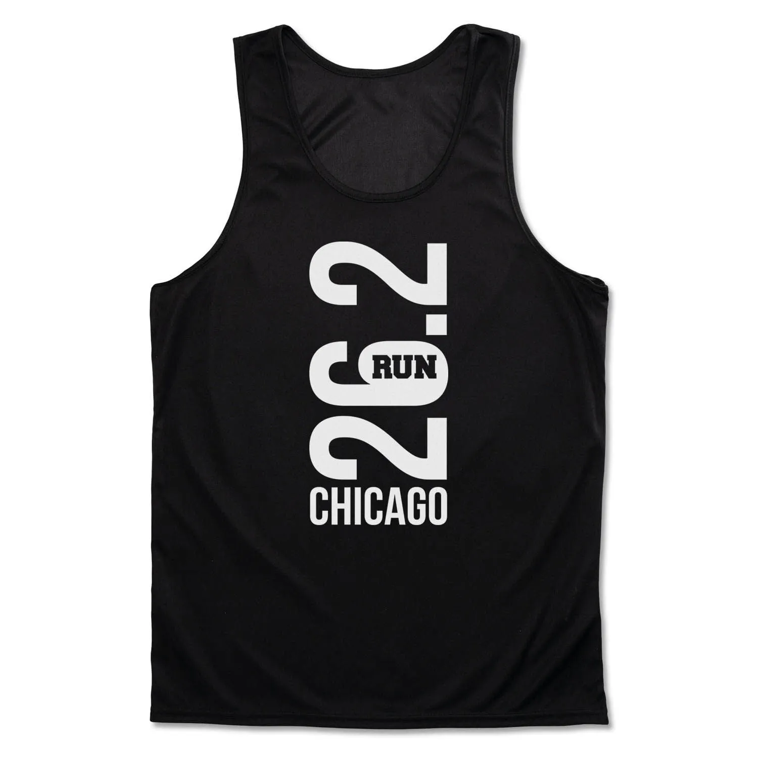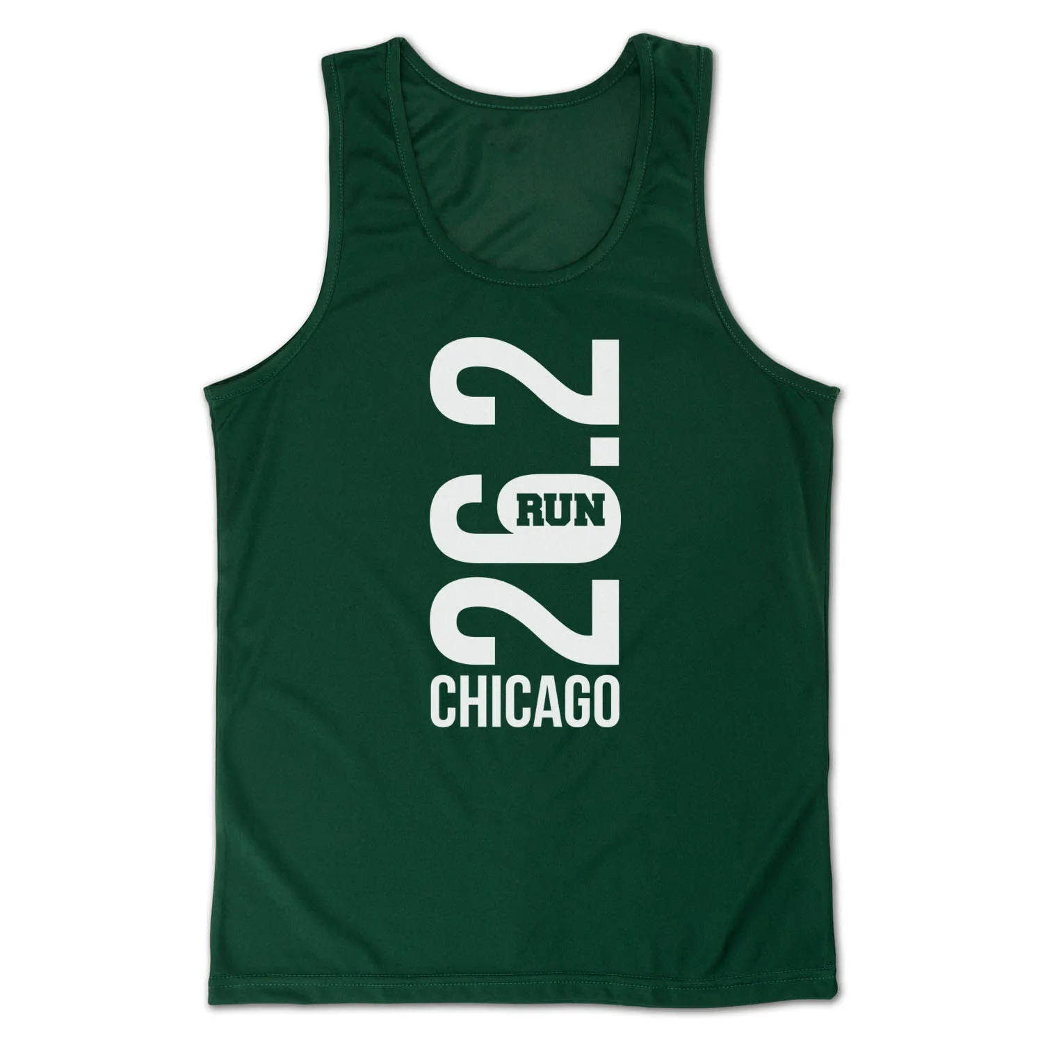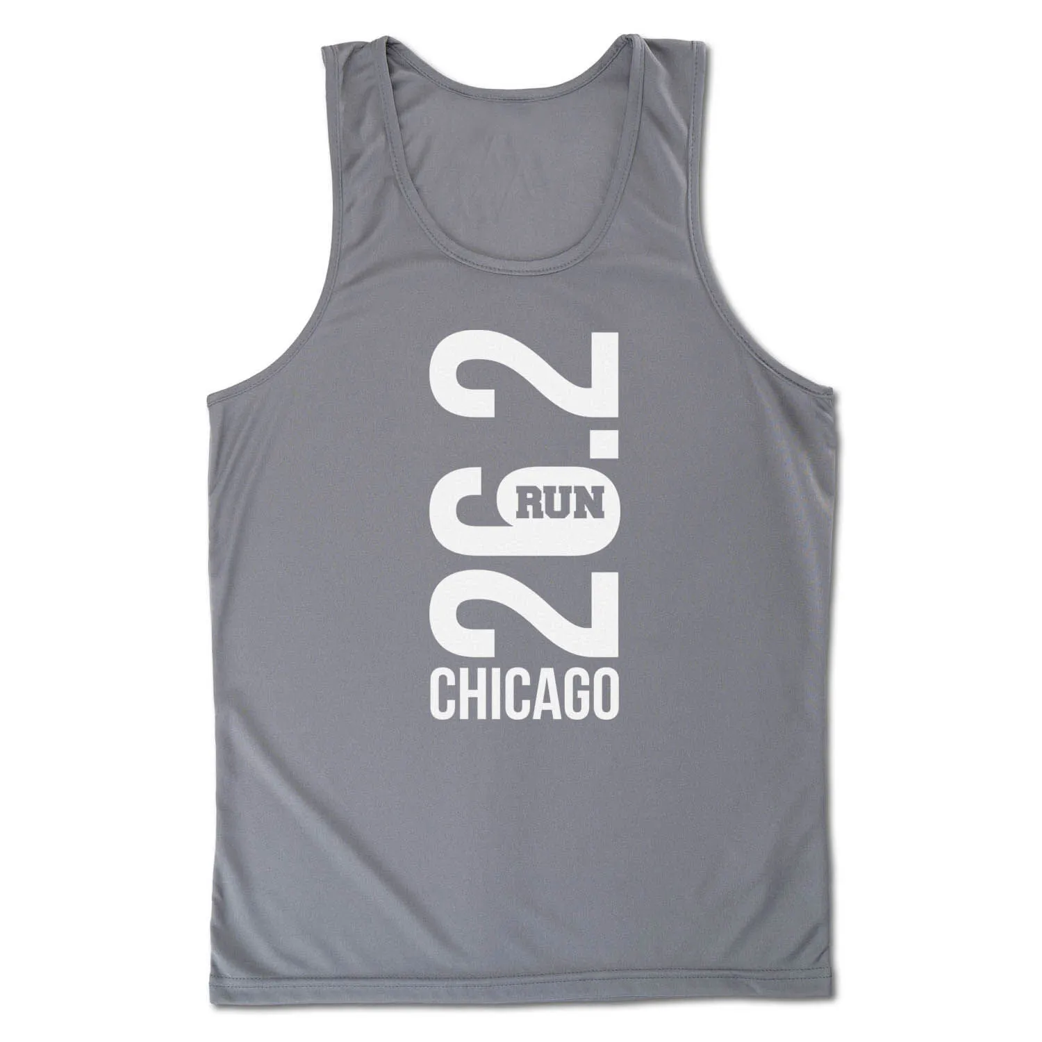 The running performance tank top for men features an exclusive Chicago 26.2 Vertical design. Our moisture-wicking tank is made from 100% polyester to keep runners dry and cool. The tank top offers a comfortable and relaxed fit that looks great when paired with any choice of athletic or everyday bottoms. This performance tank top for is perfect for everyday wear and an ideal gift for marathoners for any occasion.