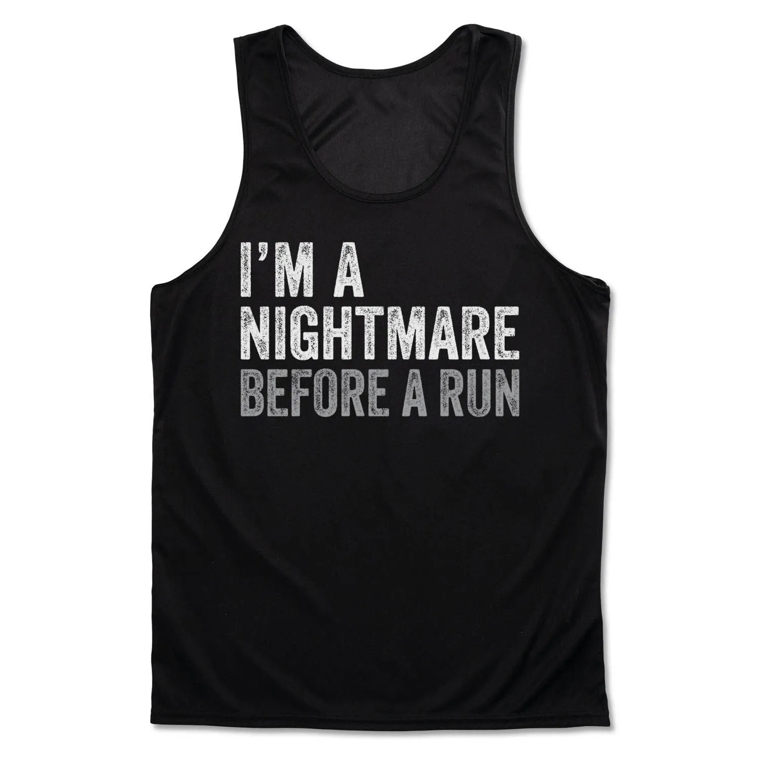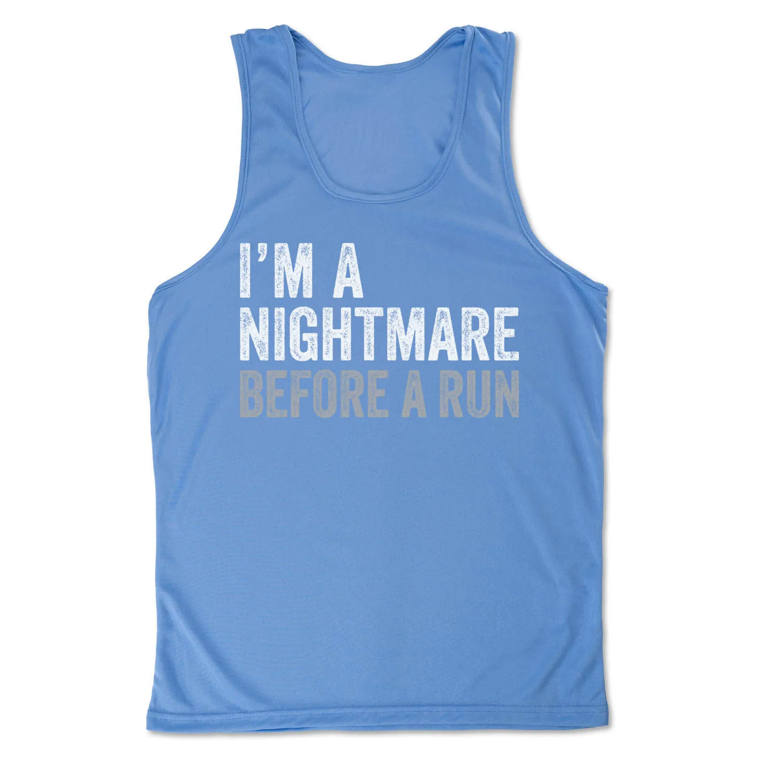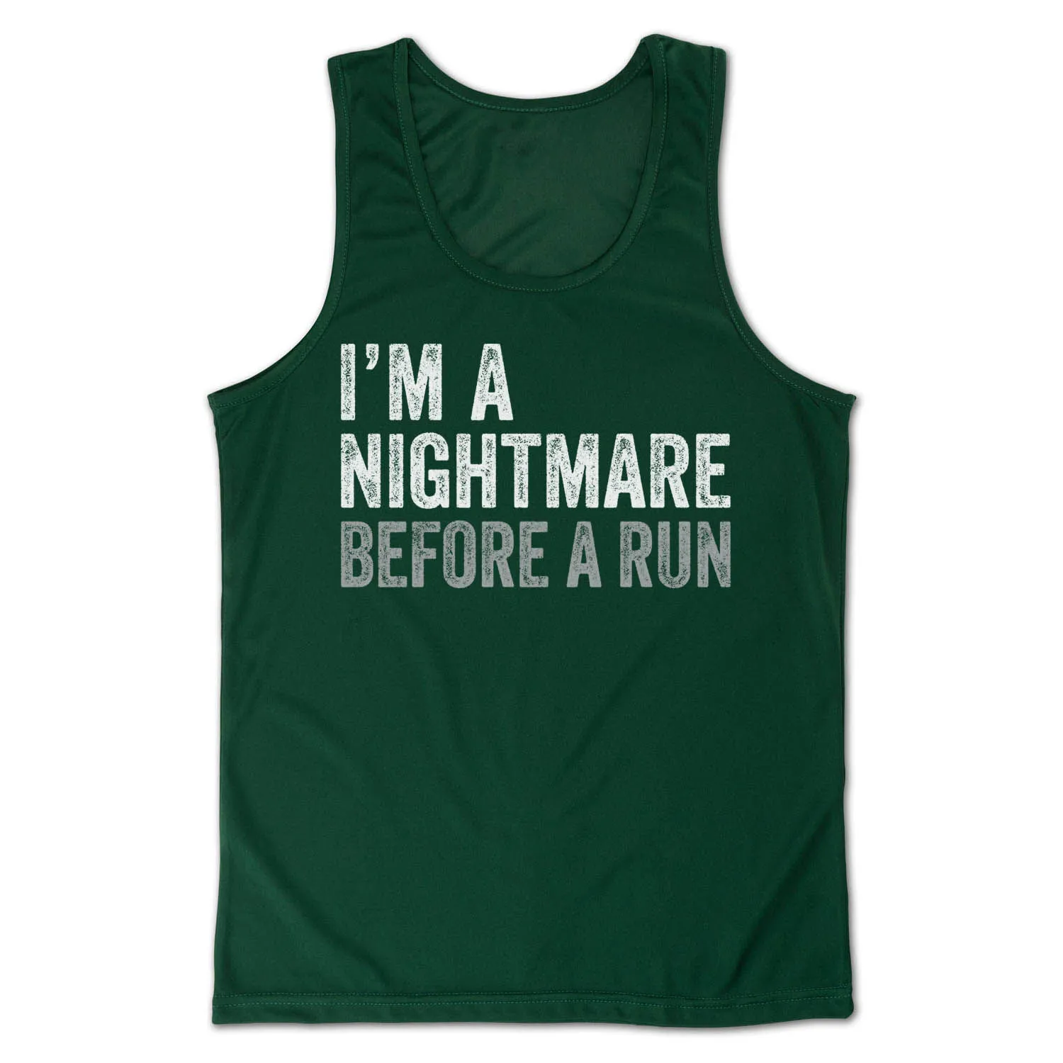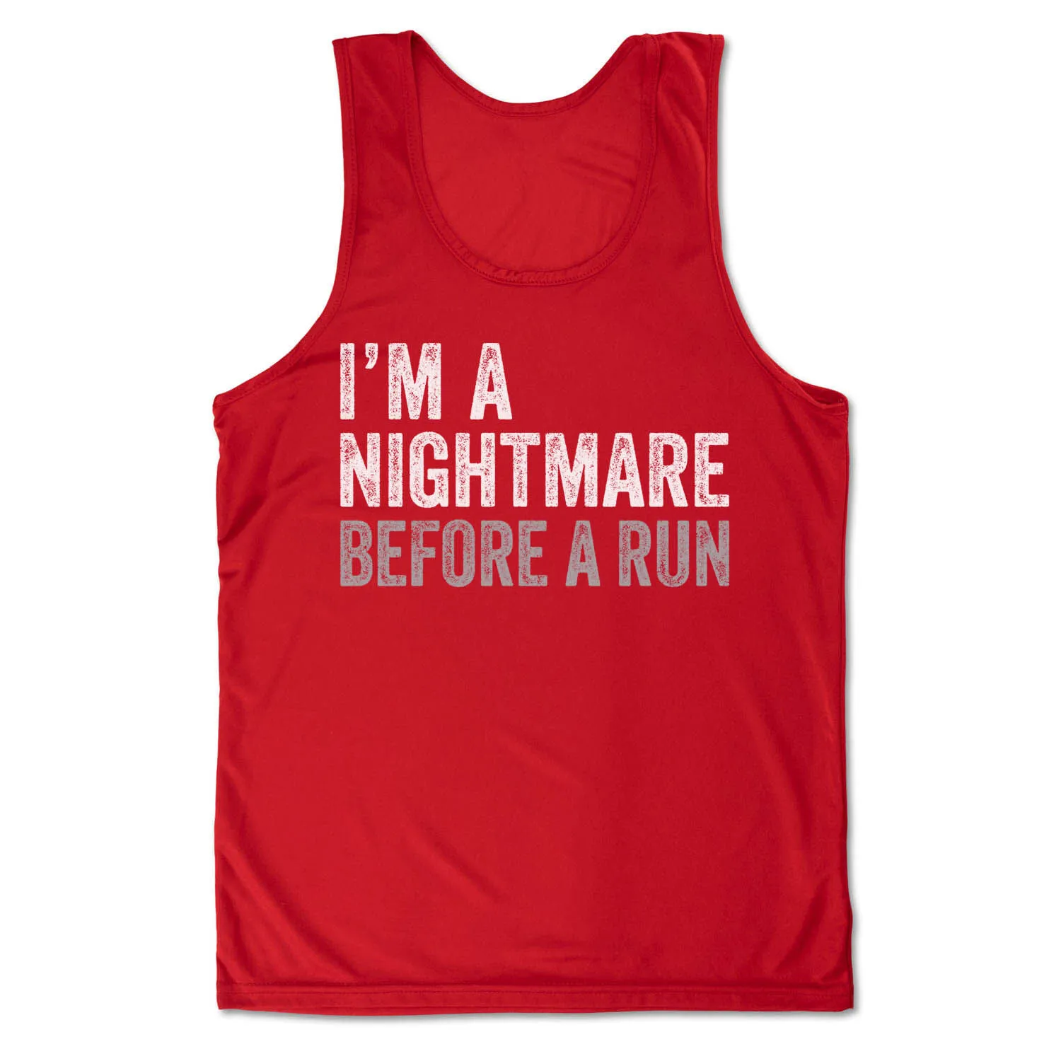 The running performance tank top for men features an exclusive I’m A Nightmare Before A Run® Bold design. Our moisture-wicking tank is made from 100% polyester to keep runners dry and cool. The tank top offers a comfortable and relaxed fit that looks great when paired with any choice of athletic or everyday bottoms. This performance tank top for is perfect for everyday wear and an ideal gift for runners for any occasion.