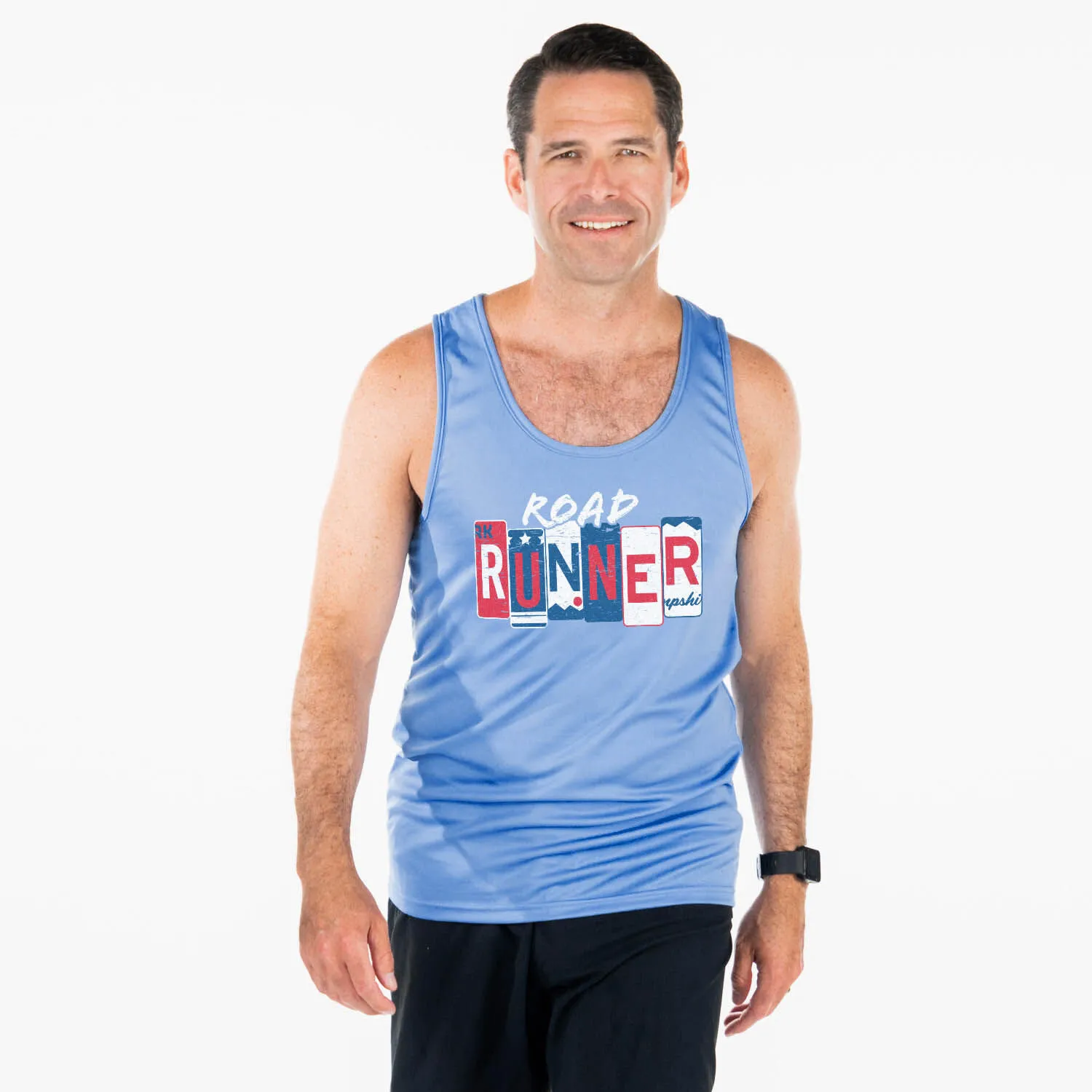 The running performance tank top for men features an exclusive Road Runner design. Our moisture-wicking tank is made from 100% polyester to keep runners dry and cool. The tank top offers a comfortable and relaxed fit that looks great when paired with any choice of athletic or everyday bottoms. This performance tank top for is perfect for everyday wear, and an ideal running gift for any occasion.