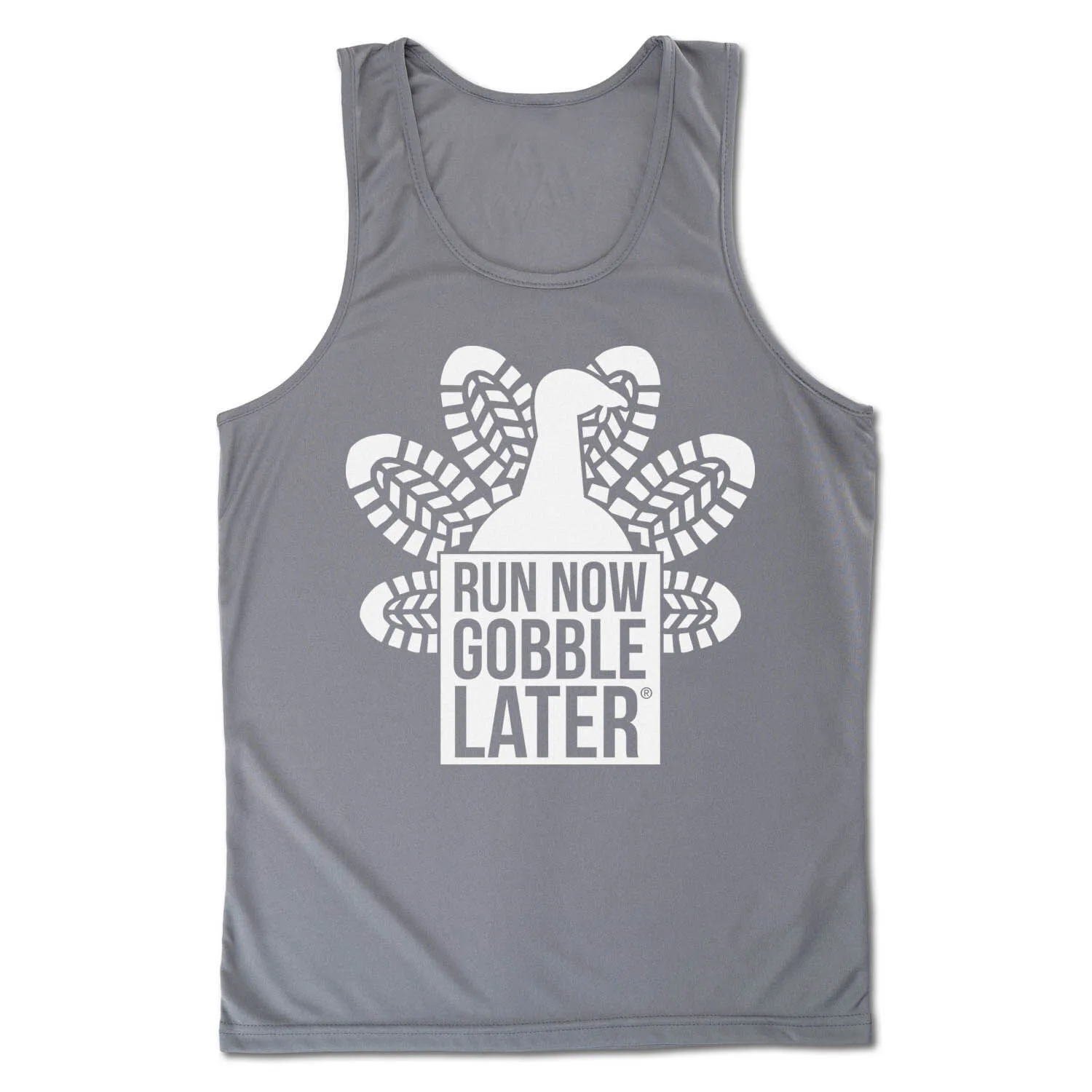 The running performance tank top for men features an exclusive Thanksgiving Run design. Our moisture-wicking tank is made from 100% polyester to keep runners dry and cool. The tank top offers a comfortable and relaxed fit that looks great when paired with any choice of athletic or everyday bottoms. This performance tank top for is perfect for everyday wear and an ideal gift for runners for any occasion.