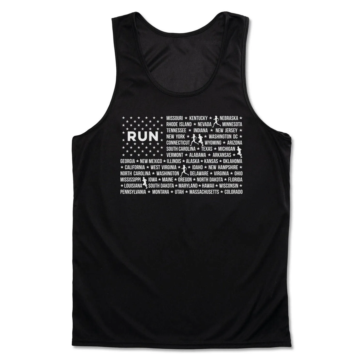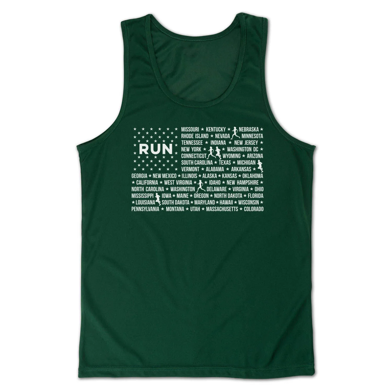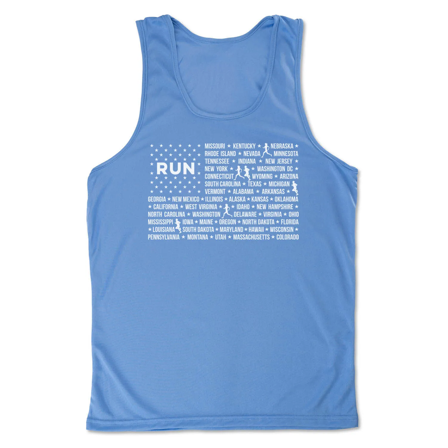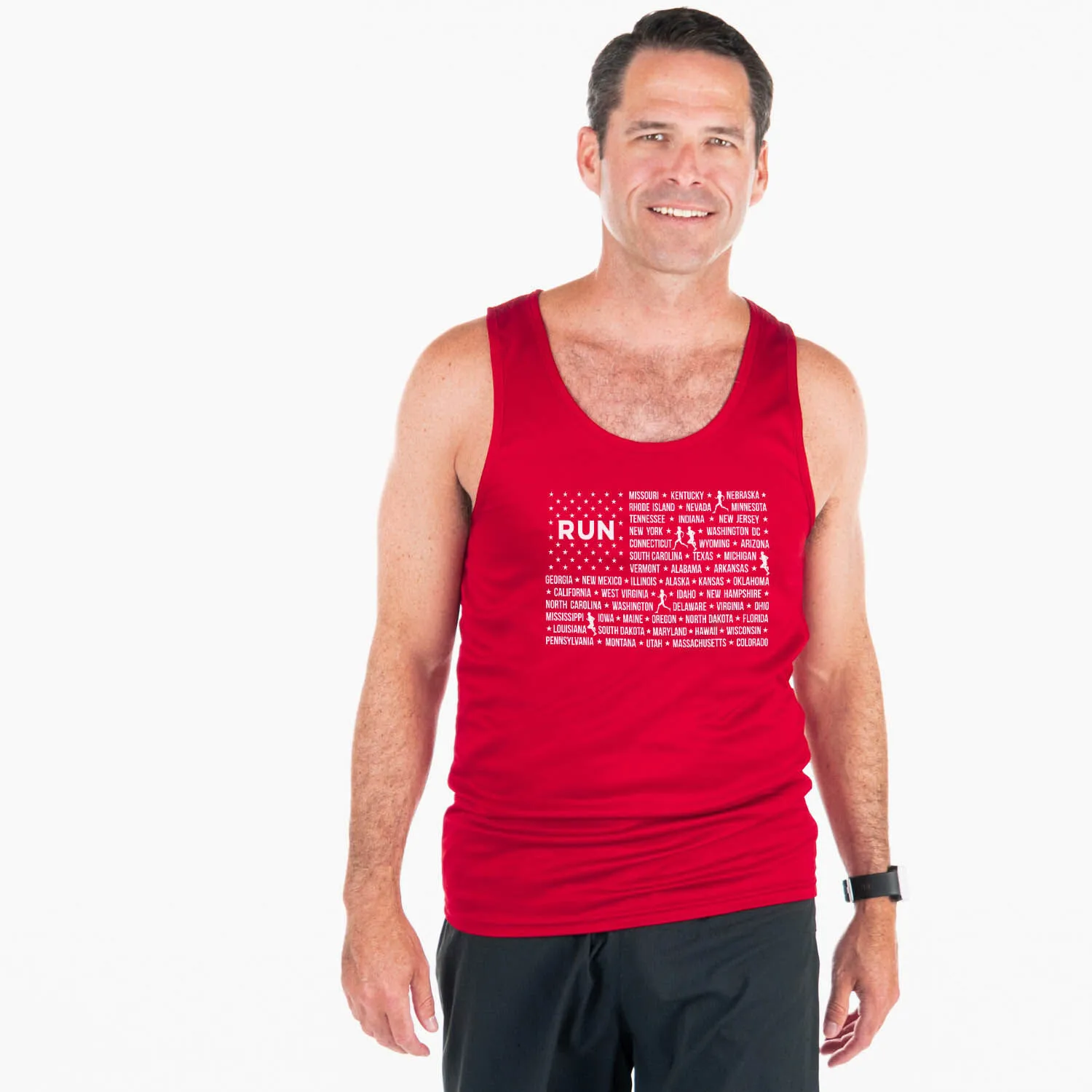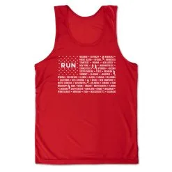 The running performance tank top for men features an exclusive We Run United design. Our moisture-wicking tank is made from 100% polyester to keep runners dry and cool. The tank top offers a comfortable and relaxed fit that looks great when paired with any choice of athletic or everyday bottoms. This performance tank top for is perfect for everyday wear and an ideal gift for runners for any occasion.