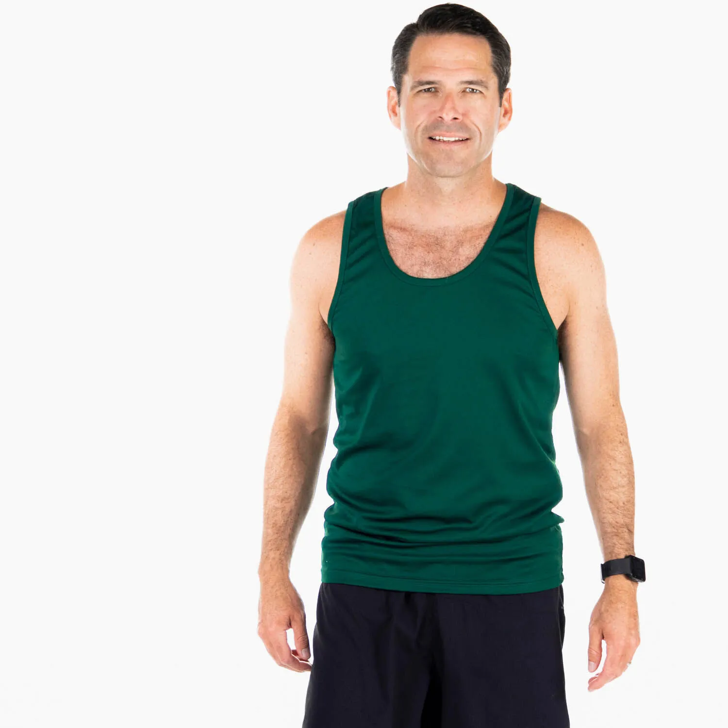 The performance tank top for men features an exclusive running design. Our moisture-wicking tank is made from 100% polyester to keep runners dry and cool. The tank top offers a comfortable and relaxed fit that looks great when paired with any choice of athletic or everyday bottoms. This performance tank top for is perfect for everyday wear and an ideal gift for runners for any occasion.