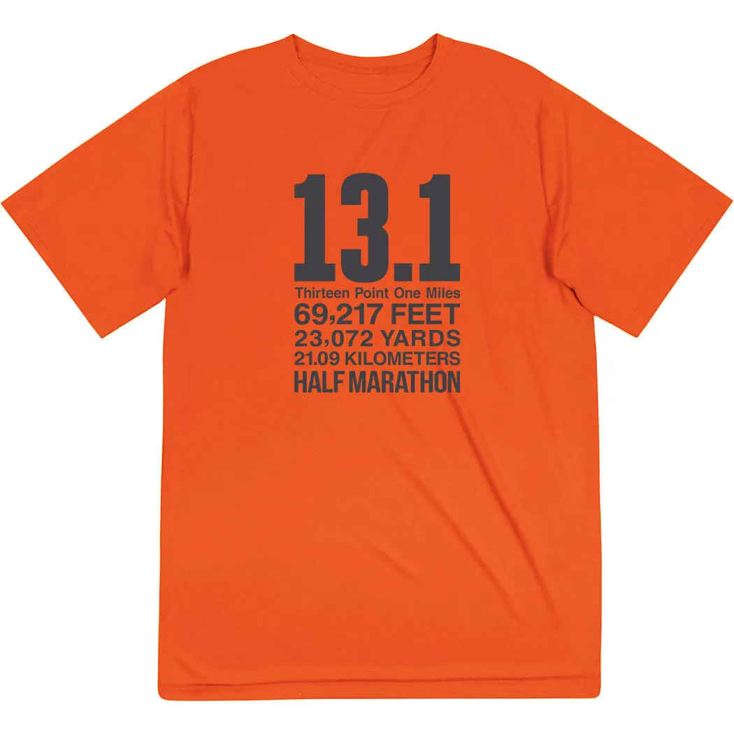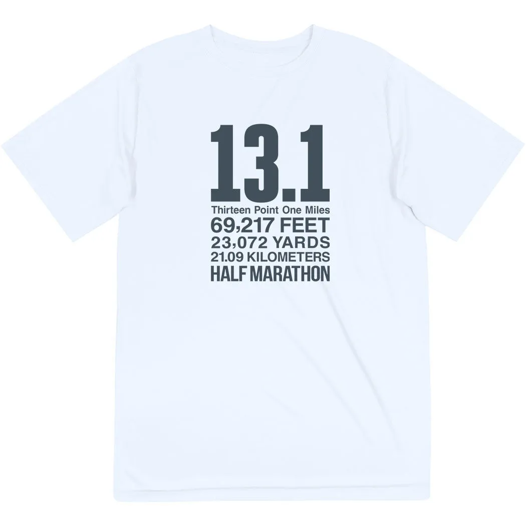 Show off your half marathoner pride in our men’s short sleeve tech tee featuring our exclusive 13.1 Math Miles design. Our V-neck performance tee is made from 100% polyester interlock to keep runners dry and cool. The short sleeve tech tee offers a comfortable and relaxed fit that looks great when paired with any choice of athletic or everyday bottoms. This unique tech tee is perfect for everyday wear and an ideal running gift for any occasion.