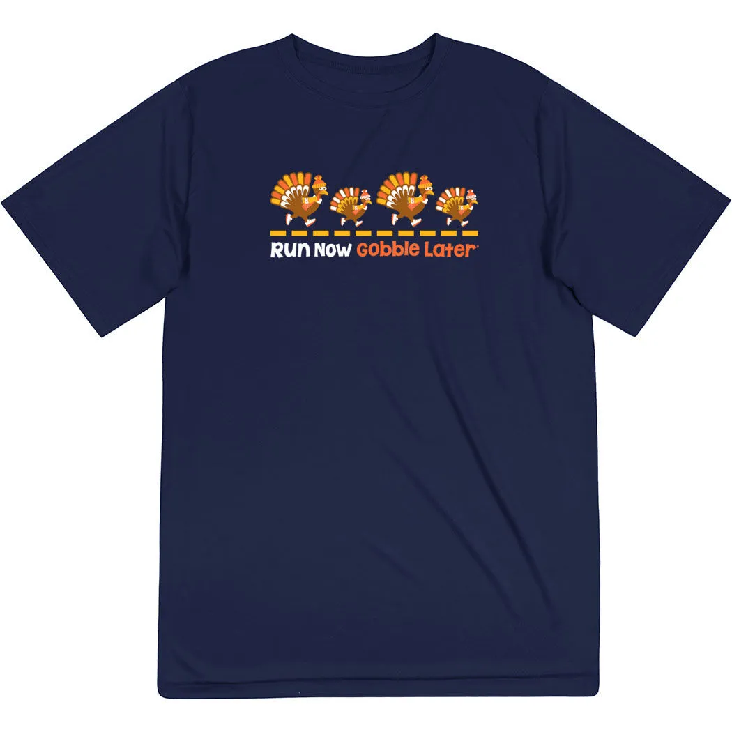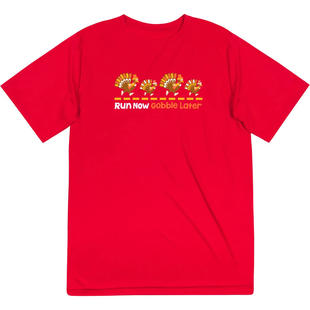 Get in the holiday spirit in our men’s short sleeve tech tee featuring a one-of-a-kind Thanksgiving design inspired by running. Our V-neck performance tee is made from 100% polyester interlock to keep runners dry and cool. The short sleeve tech tee offers a comfortable and relaxed fit that looks great when paired with any choice of athletic or everyday bottoms. This unique tech tee is perfect for everyday wear and an ideal running gift for any occasion. Any runner would love this for any turkey race.