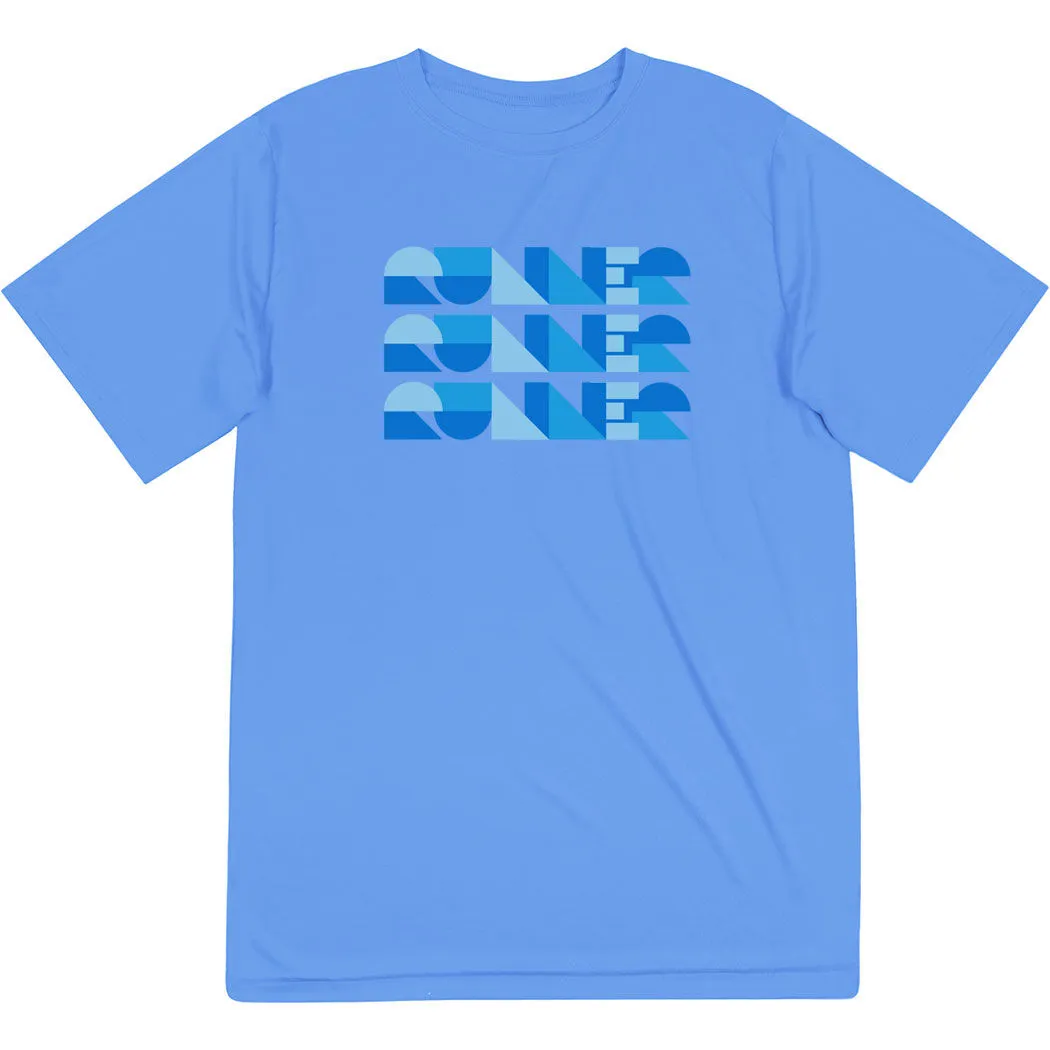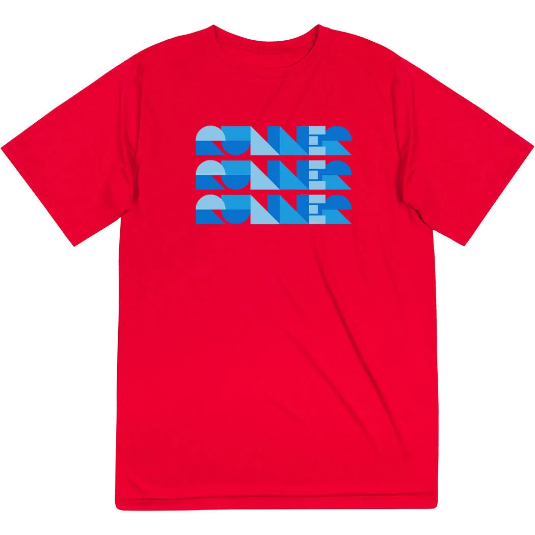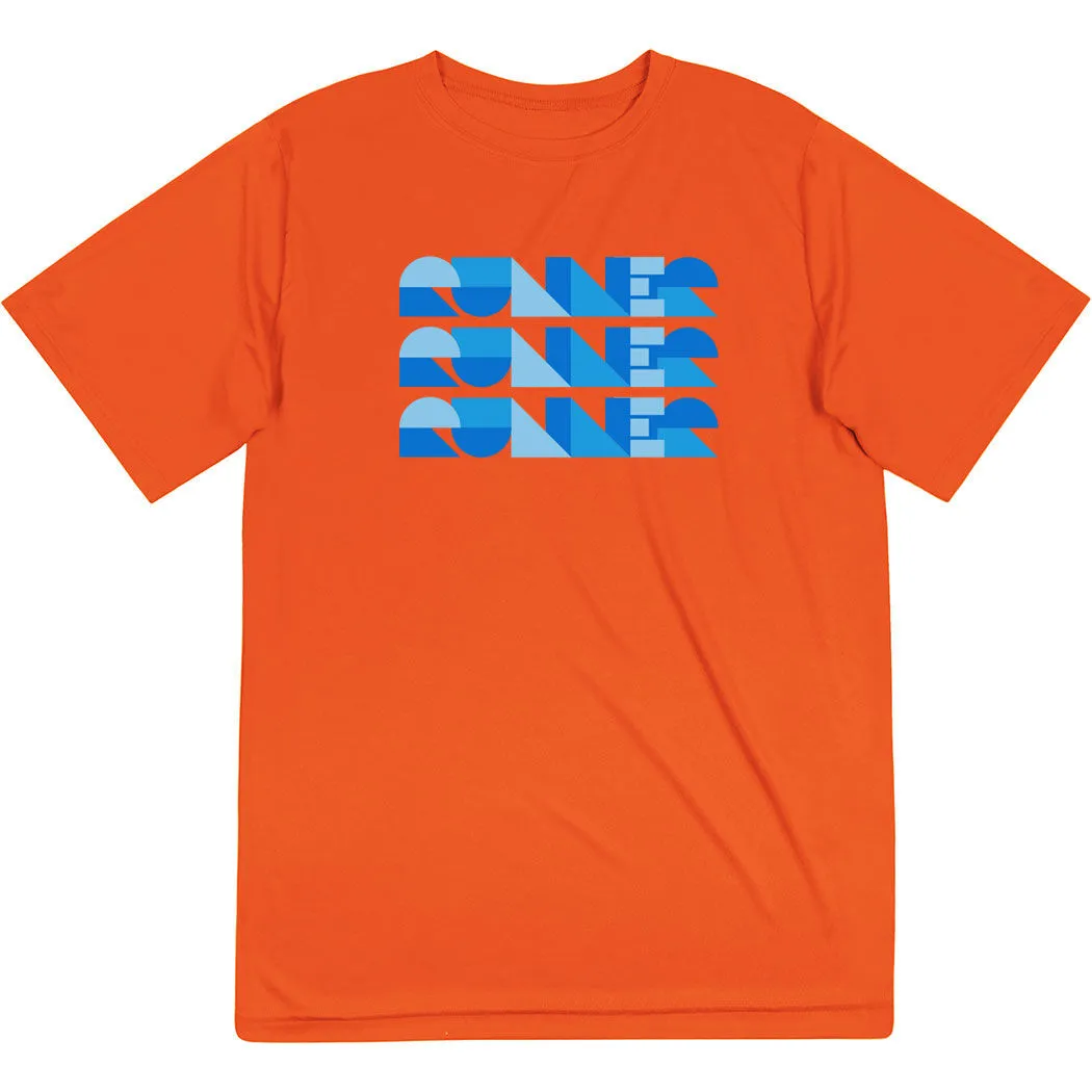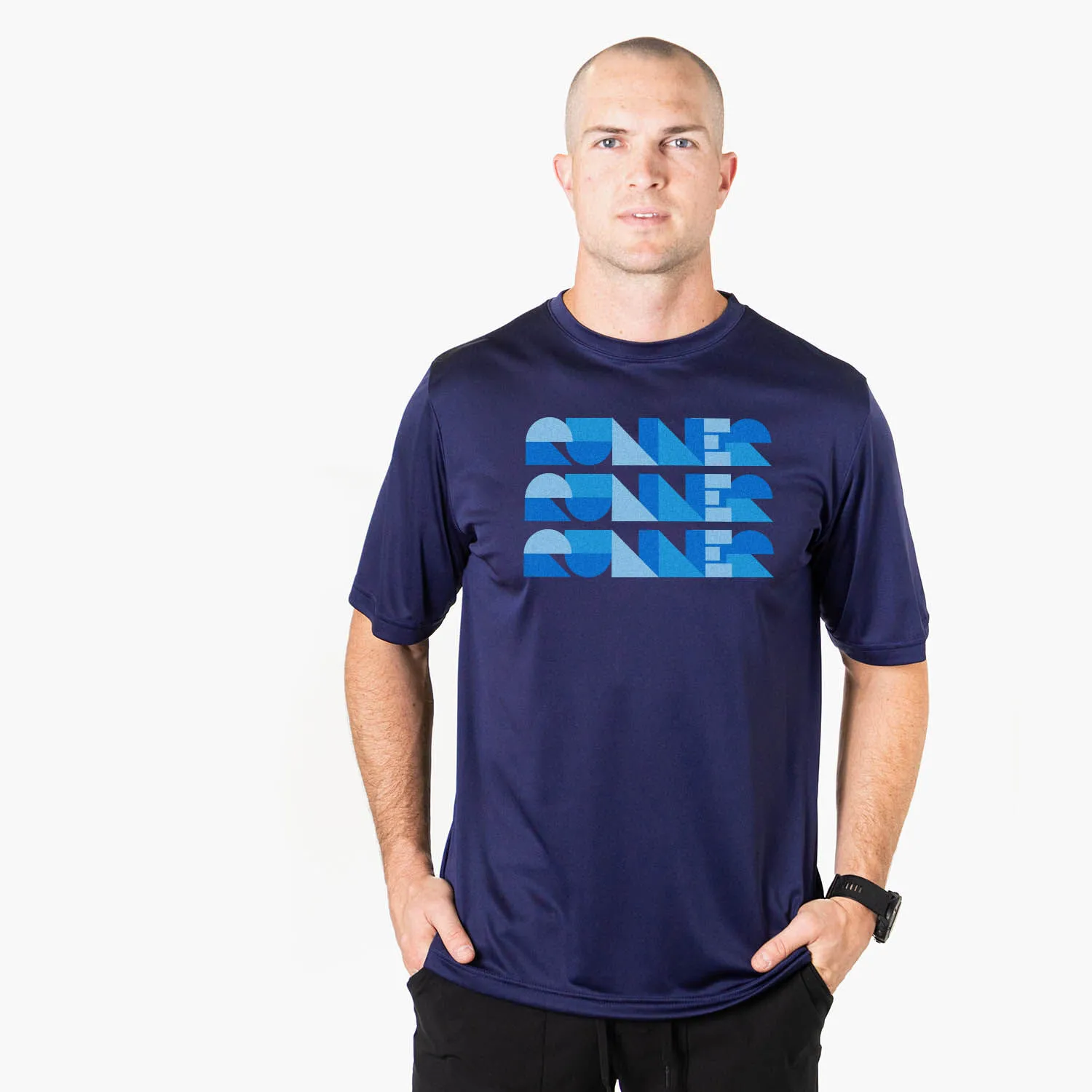 Show off your runner pride in our men’s short sleeve tech tee featuring our exclusive Run Repeat design. Our V-neck performance tee is made from 100% polyester interlock to keep runners dry and cool. The short sleeve tech tee offers a comfortable and relaxed fit that looks great when paired with any choice of athletic or everyday bottoms. This unique tech tee is perfect for everyday wear and an ideal running gift for any occasion.