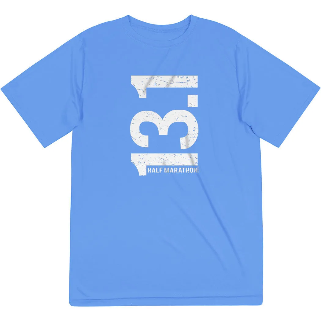 Show off your running pride in our men’s short sleeve tech tee featuring a one-of-a-kind bold design inspired by running. Our V-neck performance tee is made from 100% polyester interlock to keep runners dry and cool. The short sleeve tech tee offers a comfortable and relaxed fit that looks great when paired with any choice of athletic or everyday bottoms. This unique tech tee is perfect for everyday wear and an ideal running gift for any occasion.
