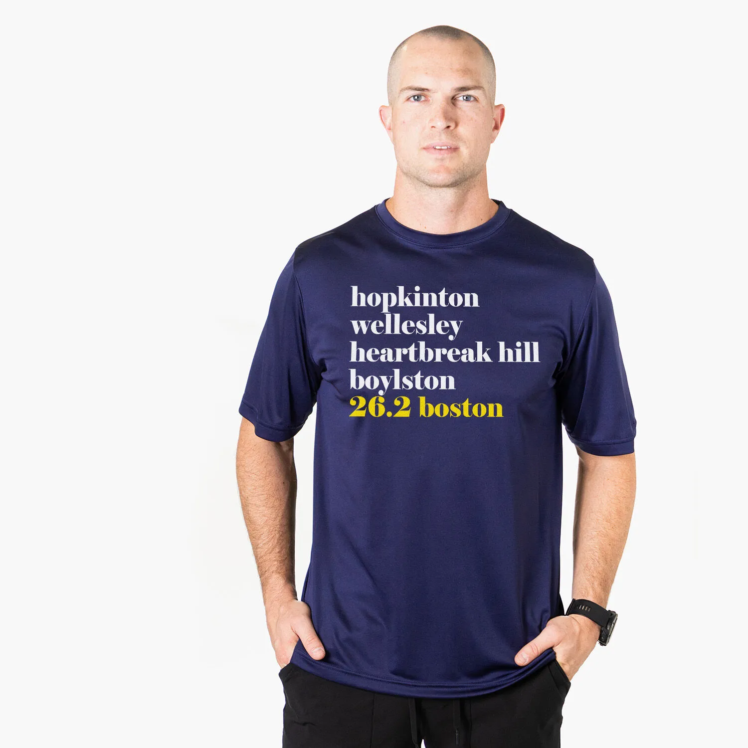 Show off your running pride in our men’s short sleeve tech tee featuring a one-of-a-kind bold design inspired by running. Our V-neck performance tee is made from 100% polyester interlock to keep runners dry and cool. The short sleeve tech tee offers a comfortable and relaxed fit that looks great when paired with any choice of athletic or everyday bottoms. This unique tech tee is perfect for everyday wear and an ideal running gift for any occasion.