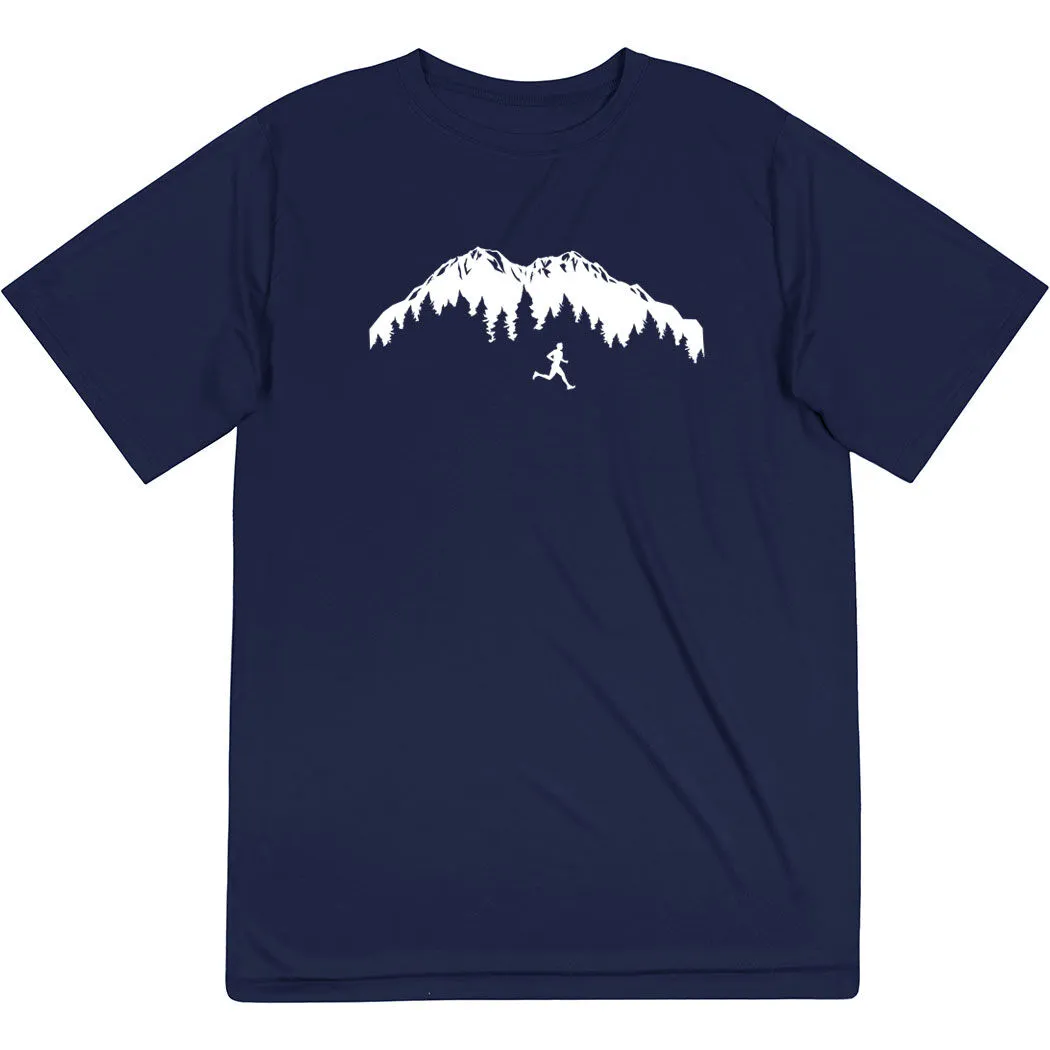 Men’s Running Short Sleeve Tech Tee – Trail Runner In The Mountains (Male)