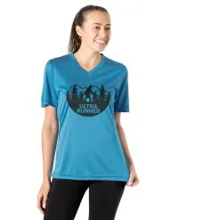 Women’s Short Sleeve Tech Tee – Trail Runner In The Mountains