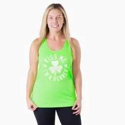 Women’s Racerback Performance Tank Top – Kiss Me I Am A Runner Shamrock