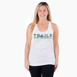 Women’s Racerback Performance Tank Top – Trails Over Treadmills