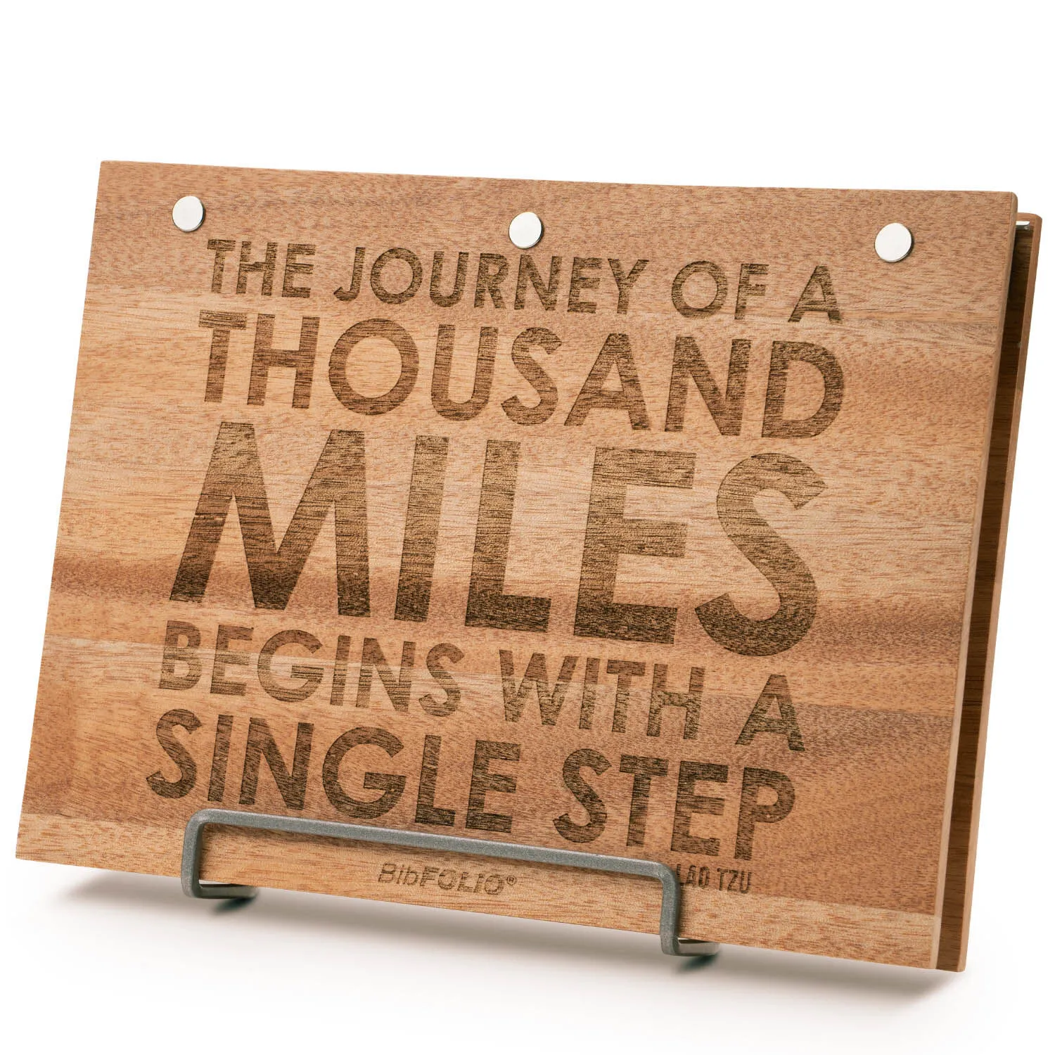Our The Journey of A Thousand Miles Premier Wood BibFOLIO® Race Bib Album is the perfect choice for any runner to archive, preserve, and display their hard-earned race bibs. With a laser engraved cover inspired by running, this race bib album will make a statement in any room. Place the album on a table, a shelf, or desk – both at home or in the office to celebrate your running memories and achievements. Made from premier wood, the BibFOLIO® features an aluminum hinge to hold numerous race bibs. To add protector sleeves with race bibs, remove both screws and slide the protector sleeves into place. Once the sleeves are in place, securely tighten the screws using a flat head screwdriver if necessary. Perfect keepsake gift for a determined runner for any occasion.Includes 12 Race Bib Vinyl Protector Sleeves. The high-quality vinyl sleeves serve as a barrier against unintentional damage when browsing the album. Designed to fit the race bib album perfectly.