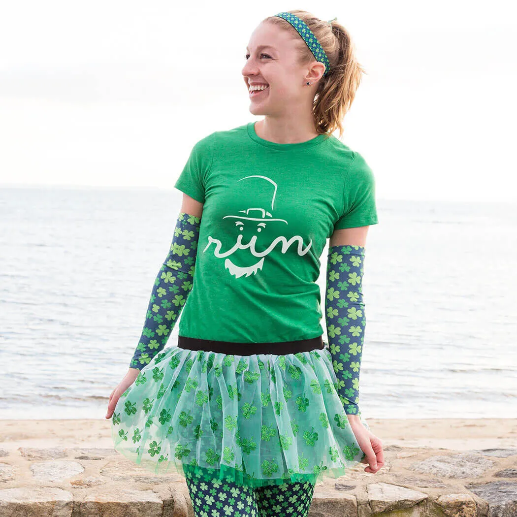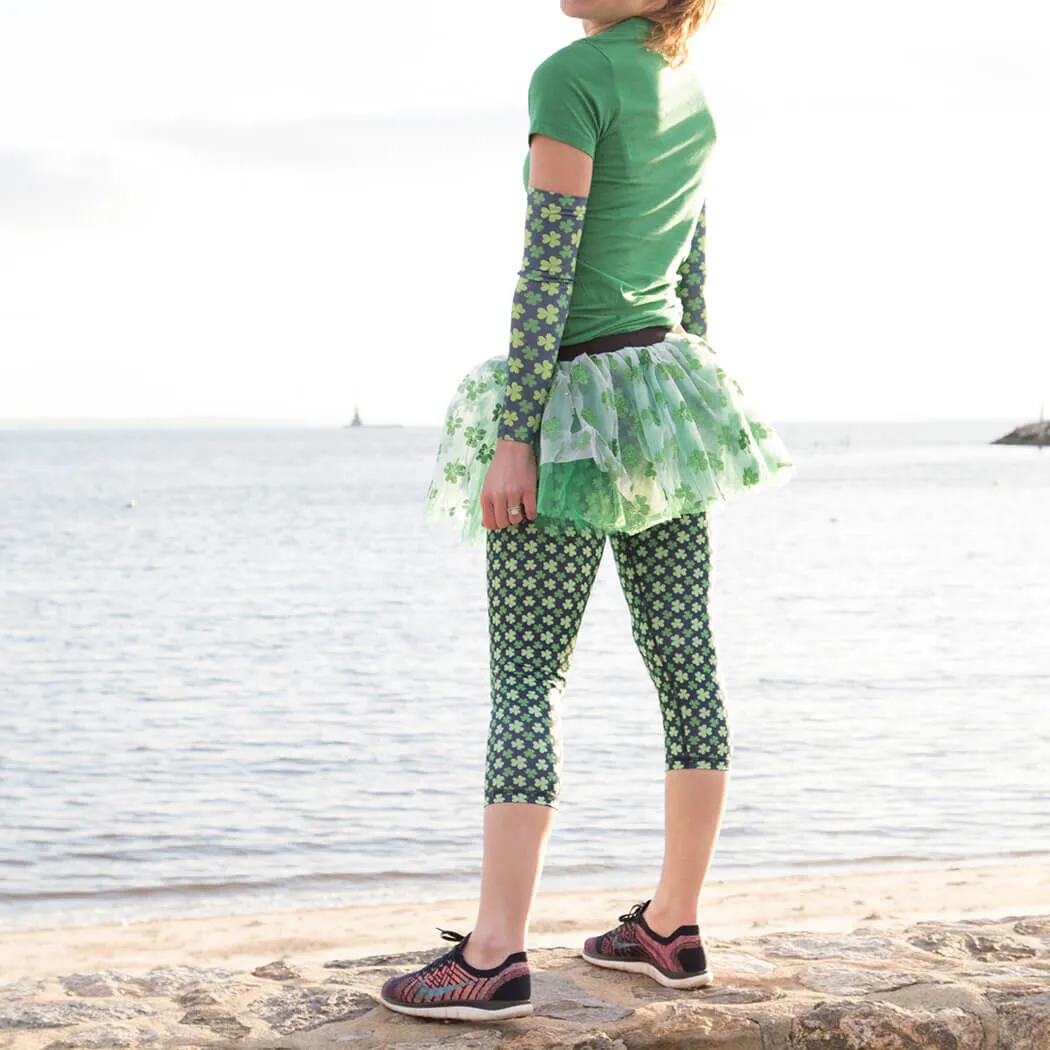 Give any St. Patrick’s Day outfit a little extra sparkle with our glitter shamrock tutu, this is perfect for a race or just going for a run with friends. This tutu has 3 layers of tulle, the top layer with glitter shamrocks and the 2 underlay green layers of tulle. Time to run with the luck of the Irish with our glitter shamrock tutu.
