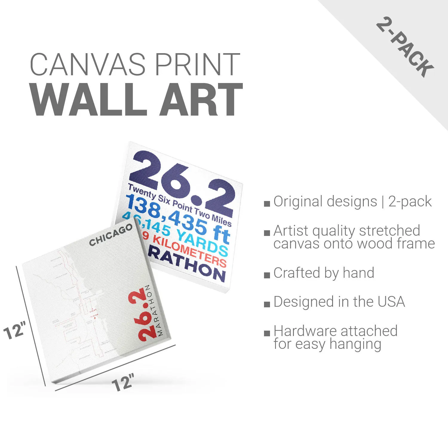 Decorate any room with inspiration and running memories with our one-of-a-kind Chicago Route 2-piece running canvas set. Each wall art measures 12″ X 12″ and features an exclusive design and artist-grade wrapped edges to complete the look. Bring your passion for running to life with the texture and depth of these unique stretched canvases. Perfect to brighten up and elevate any room or office and a thoughtful gift for any occasion. Hardware included for easy hanging.