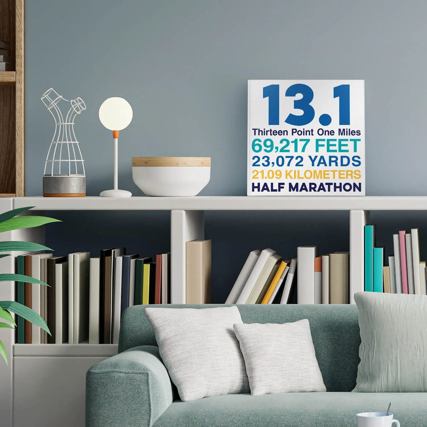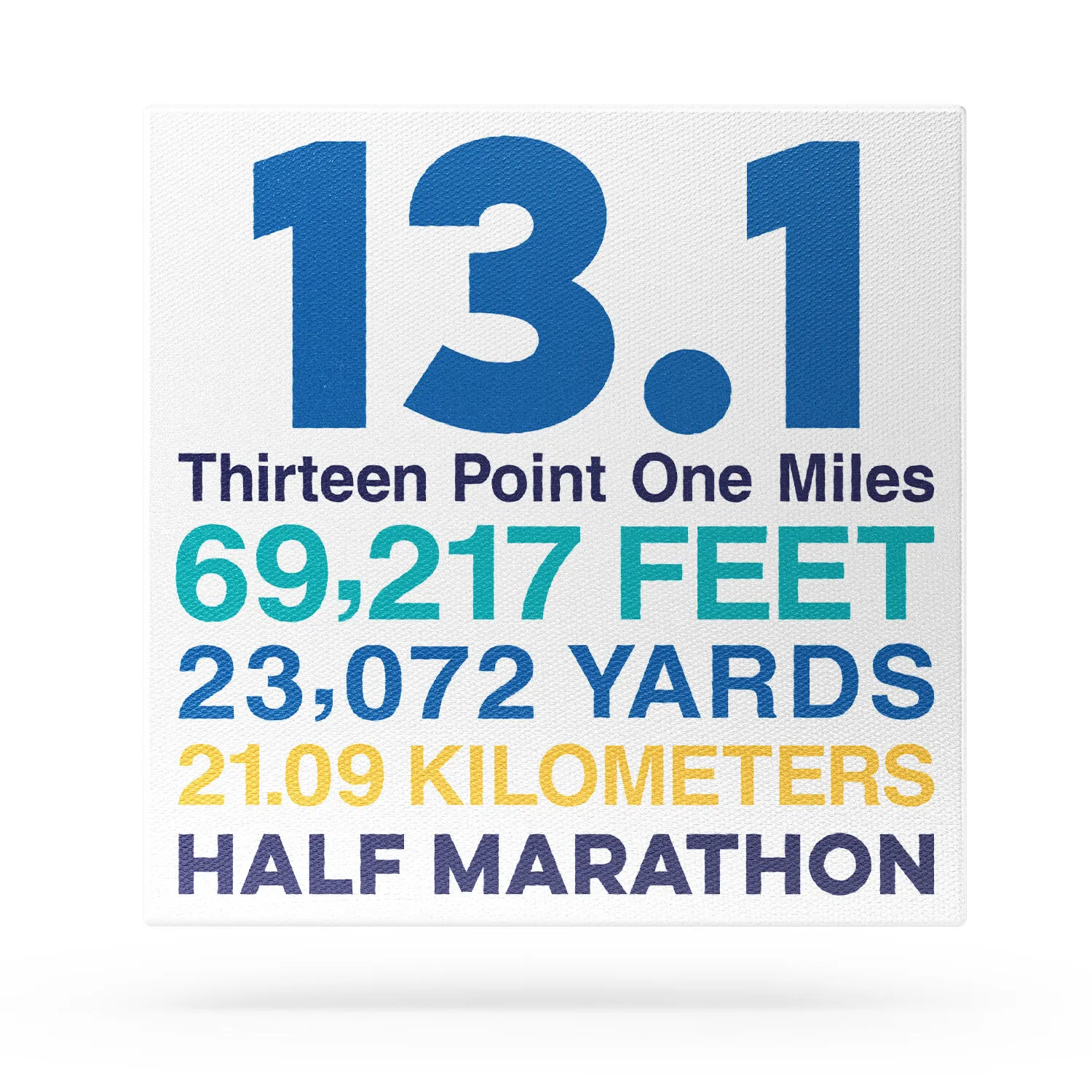 Decorate any room with inspiration and running memories with our one-of-a-kind Math Miles 13.1 running canvas. This 12″ X 12″ fine wall art features an exclusive design and artist-grade wrapped edges to complete the look. Bring your passion for running to life with the texture and depth of this unique stretched canvas. Perfect to brighten up and elevate any room or office and a thoughtful gift for any occasion. Hardware included for easy hanging.