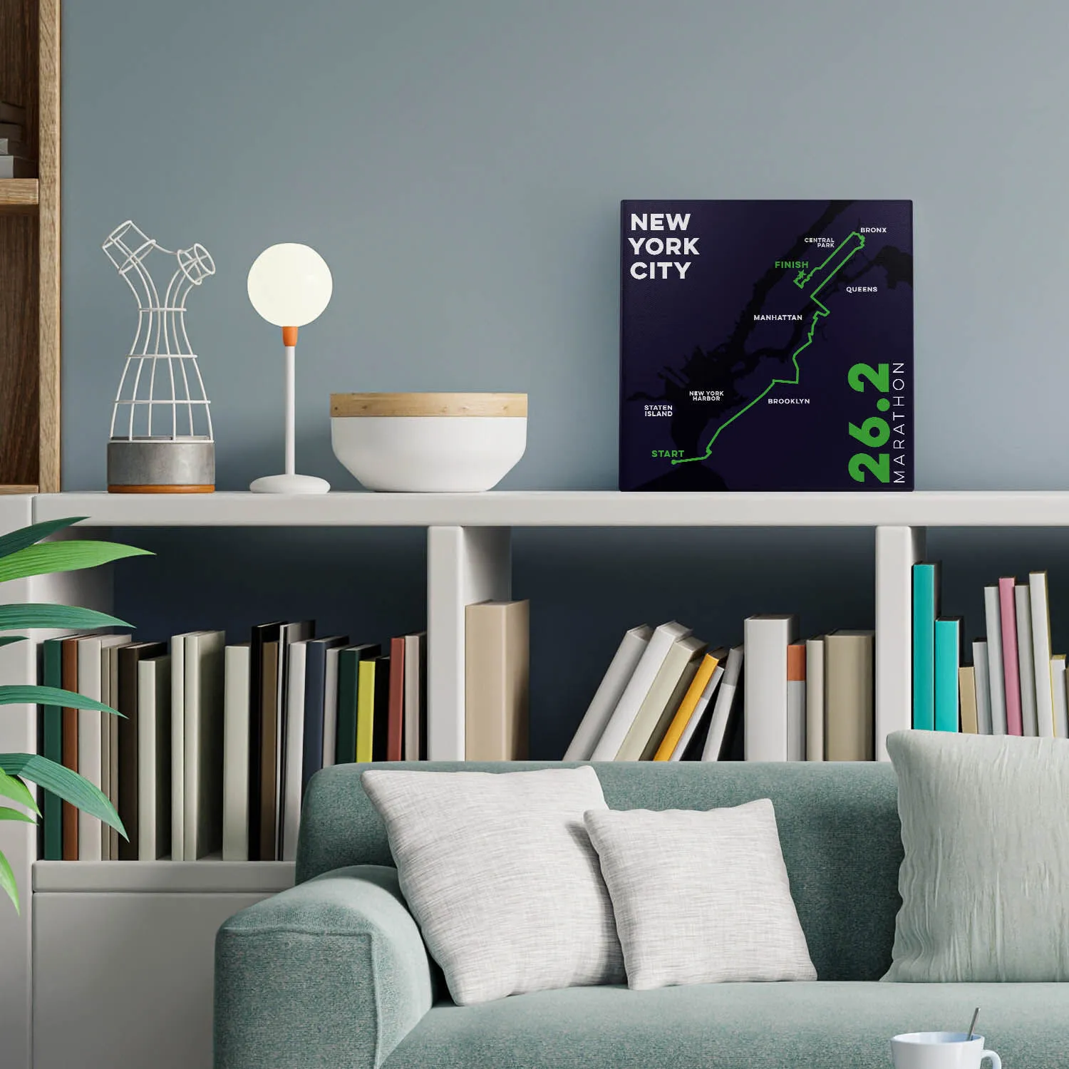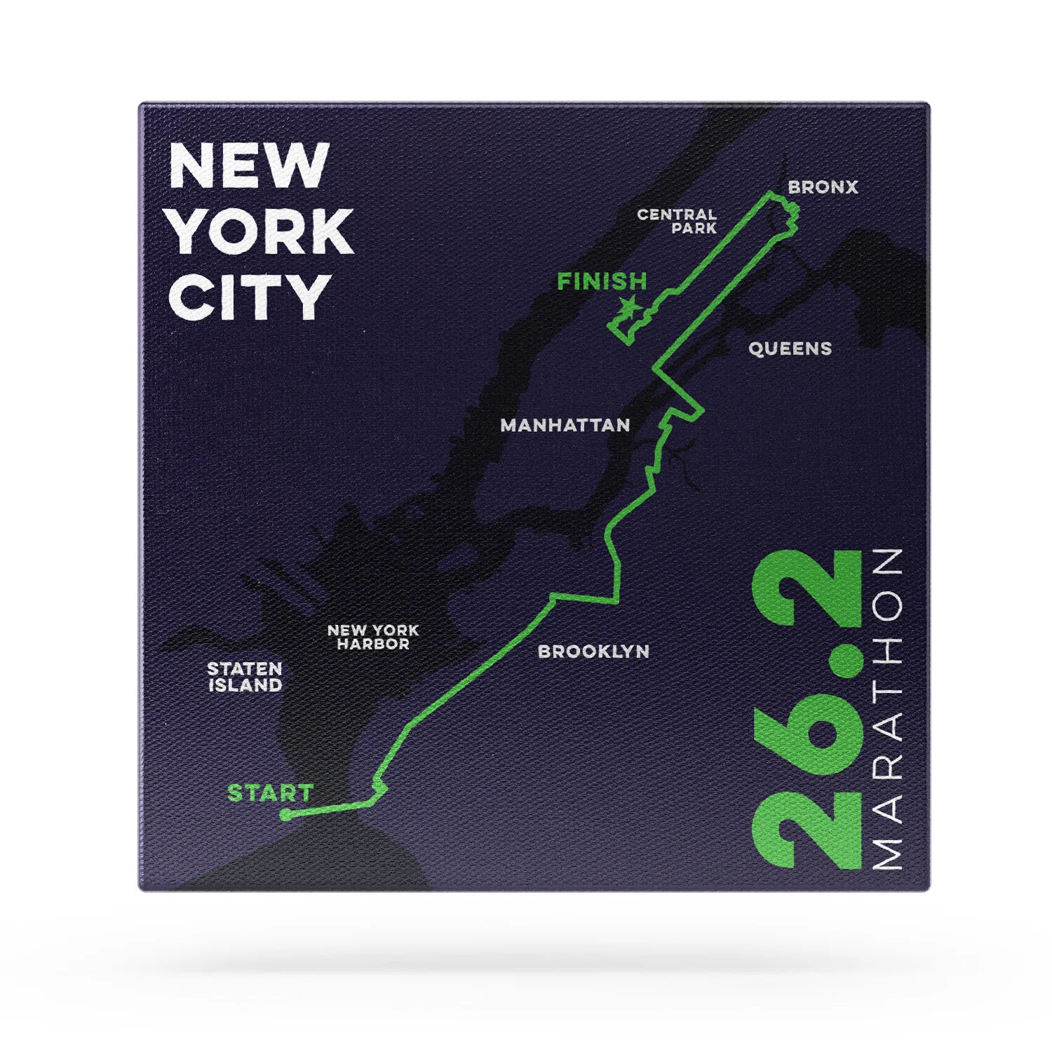 Decorate any room with inspiration and running memories with our one-of-a-kind NYC Route running canvas. This 12″ X 12″ fine wall art features an exclusive design and artist-grade wrapped edges to complete the look. Bring your passion for running to life with the texture and depth of this unique stretched canvas. Perfect to brighten up and elevate any room or office and a thoughtful gift for any occasion. Hardware included for easy hanging.