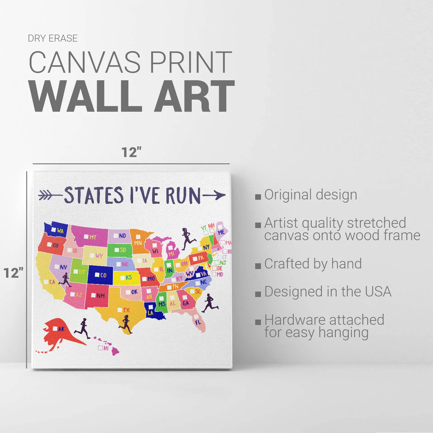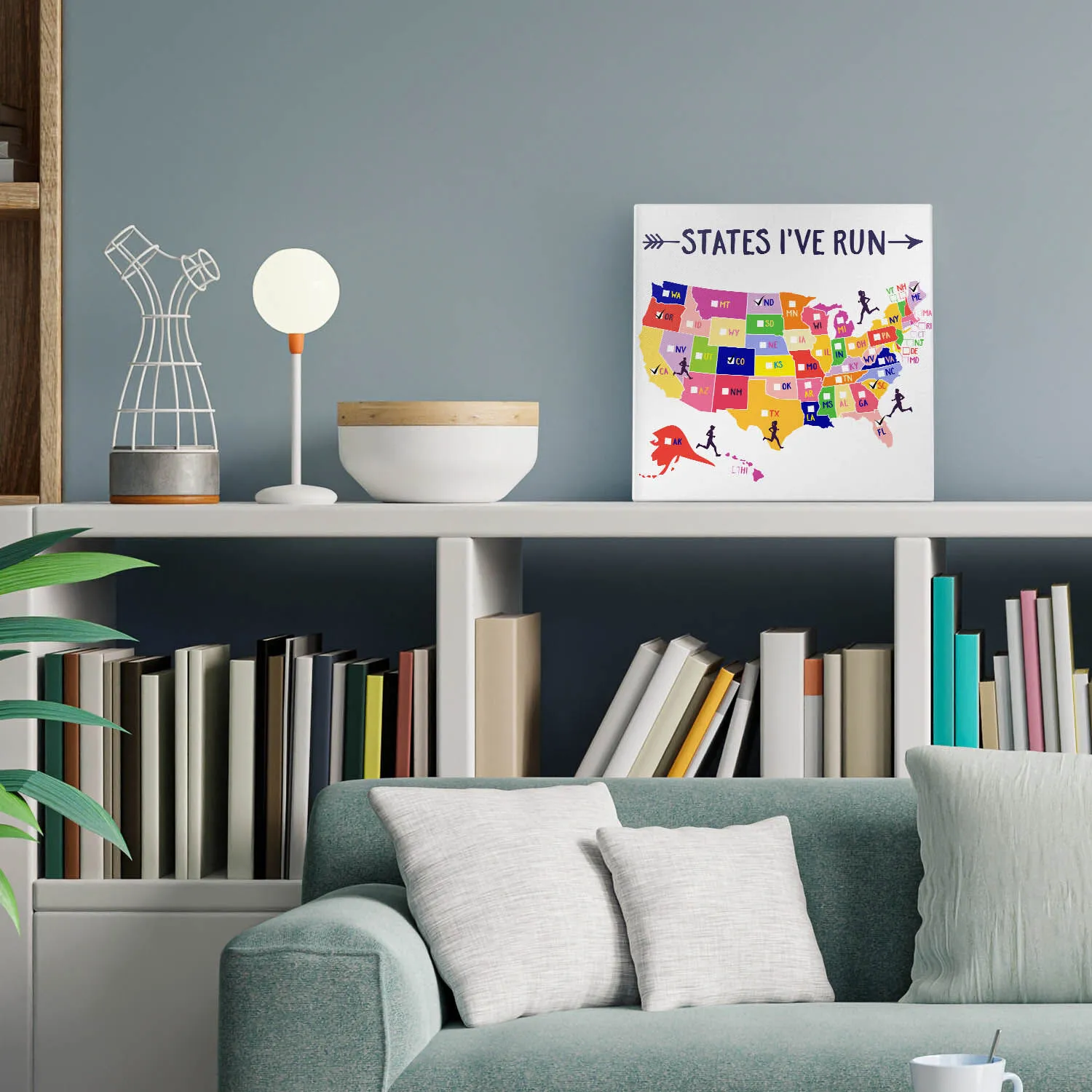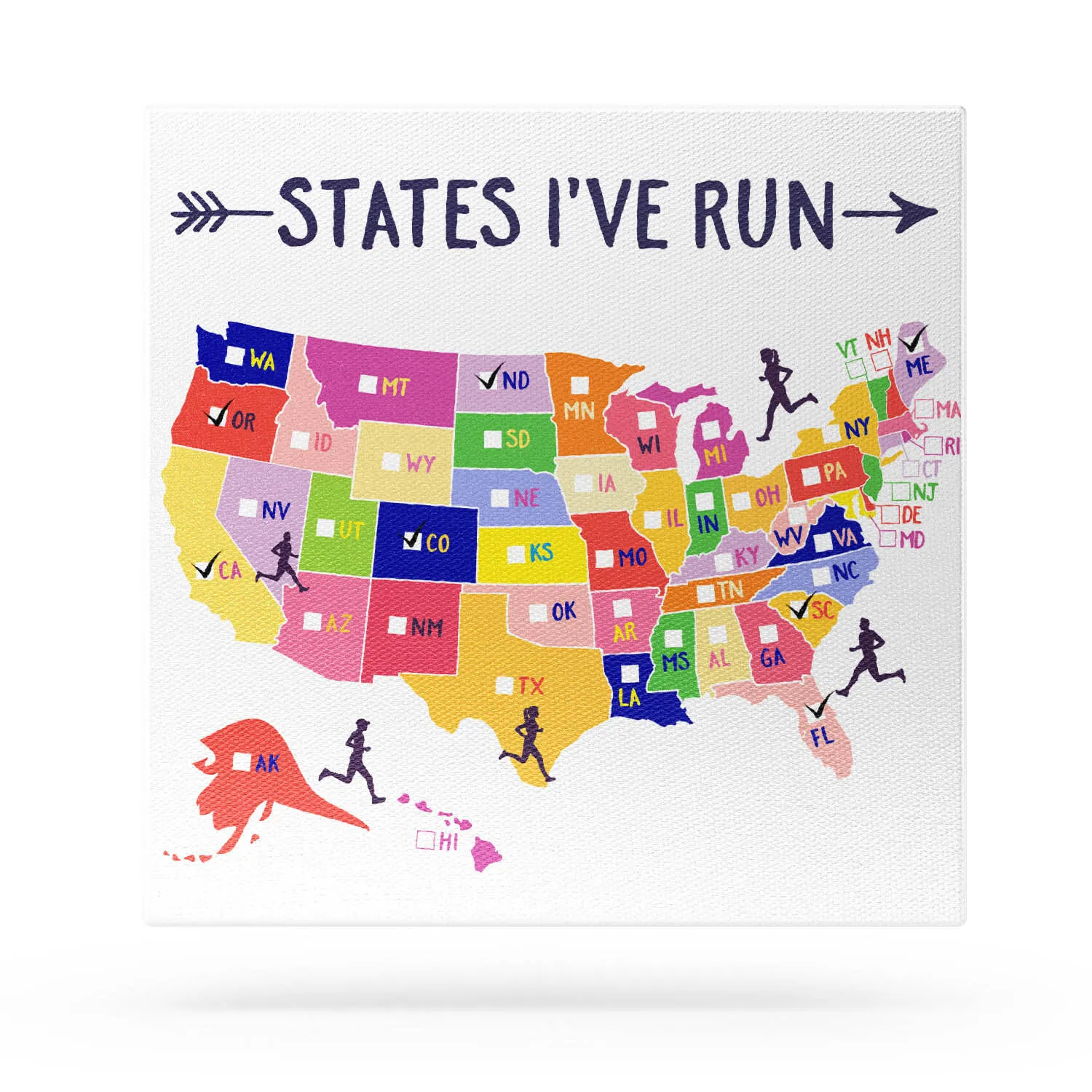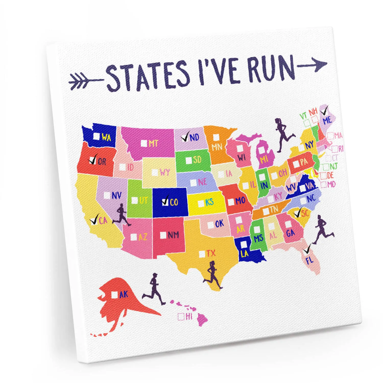 Decorate any room with inspiration and running memories with our one-of-a-kind States I’ve Run running canvas. This 12″ X 12″ fine wall art features an exclusive design and artist-grade wrapped edges to complete the look. Bring your passion for running to life with the texture and depth of this unique stretched canvas. Perfect to brighten up and elevate any room or office and a thoughtful gift for any occasion. Hardware included for easy hanging.