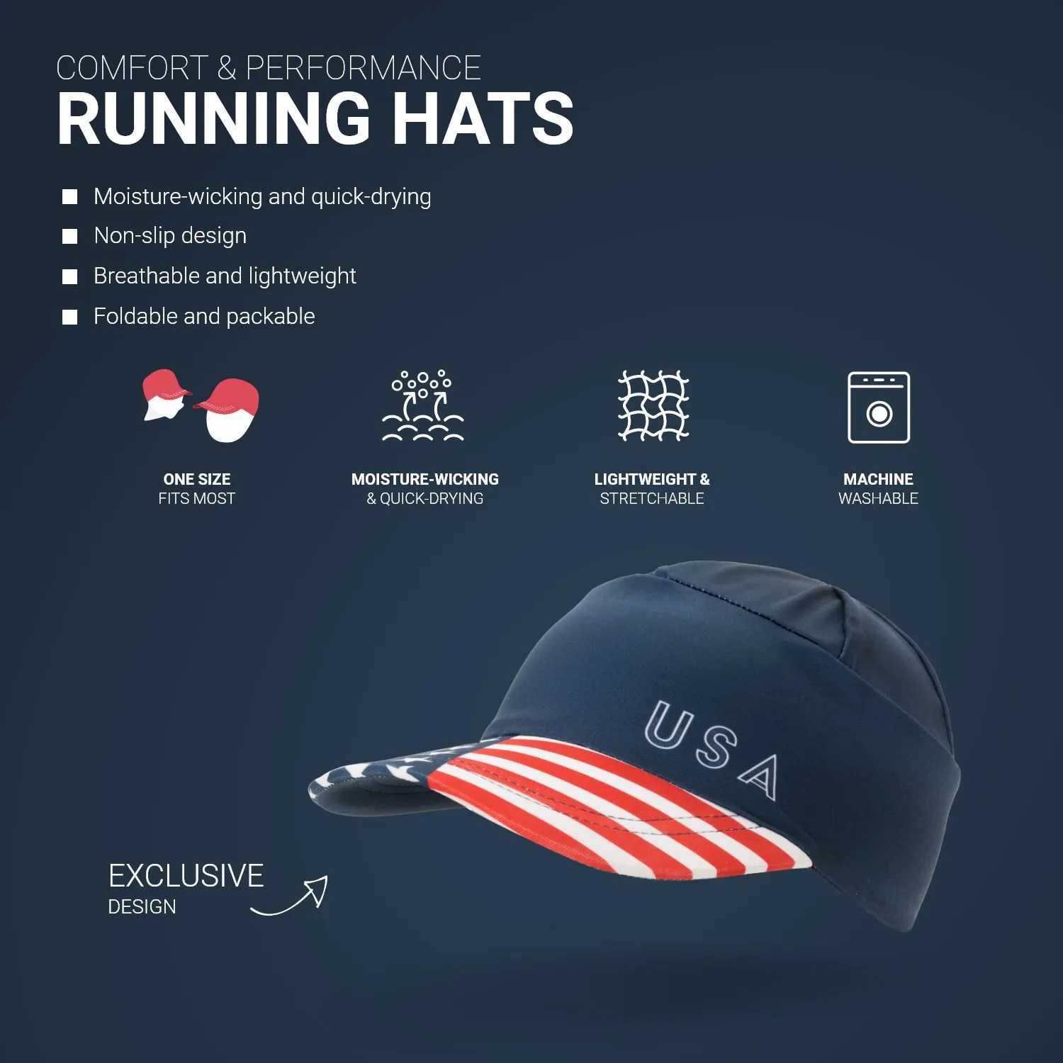This lightweight hat is ideal for a patriotic athlete. Our performance hat features a wide brim and stretchy fit for all-day comfort. The breathable and moisture-wicking material keeps you dry and cool during any activity. Keep the sun, hair, and sweat off your face while showing off your patriotic pride in our comfort performance hat.
