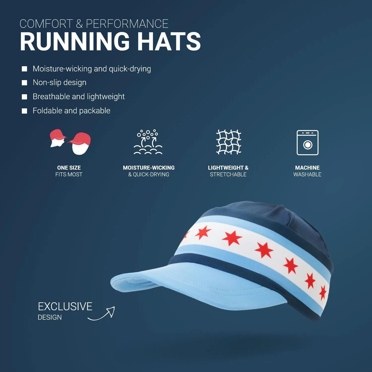 This lightweight hat is designed for Chicago runners and lovers. Our performance hat features a wide brim and stretchy fit for all-day comfort. The breathable and moisture-wicking material keeps you dry and cool during any activity. Keep the sun, hair, and sweat off your face while embracing the Windy City in our comfort performance hat.