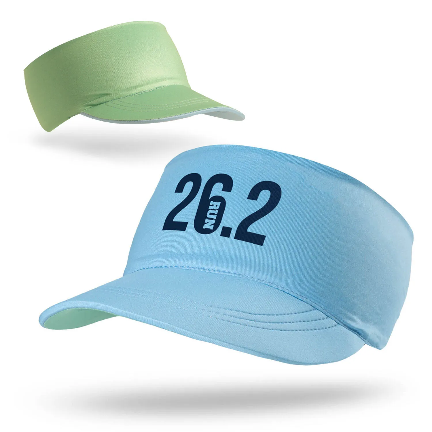 This running performance visor is designed for all the dedicated marathoners. Our lightweight visor features a wide brim and stretchable band for all-day comfort. The breathable and moisture-wicking material keeps you cool and dry during any activity. This foldable and packable visor is also reversible, offering two unique styles in one! The design on one side features a printed 26.2 Run logo, while the other side of the visor is a solid color for more of a subtle look. Keep the sun, hair, and sweat off your face while showing off your 26.2 finisher pride in our comfort visor for runners and athletes.
