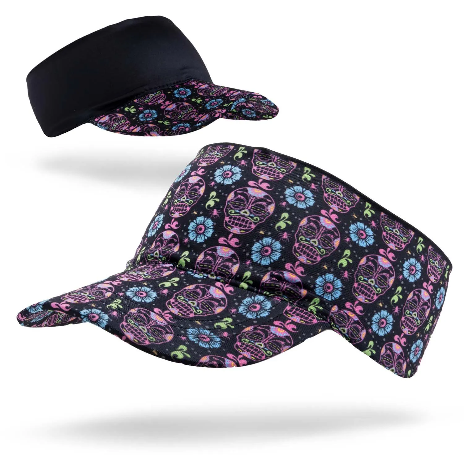 This lightweight visor is designed for the Day of the “Run” enthusiasts. Our performance visor features a wide brim and stretchable band for all-day comfort. The breathable and moisture-wicking material keeps you dry and cool during any activity. These foldable visors are also reversible, offering two unique designs in one! The design on one side features an all-over Day of the Run pattern and solid black with Day of the Run pattern on the brim on the other. Keep the sun, hair, and sweat off your face while showing off your runner pride in our comfort performance visor.