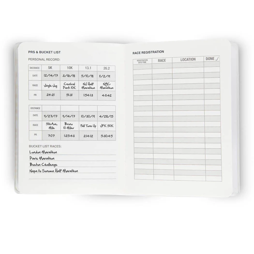 This runner’s journal is a running log, a motivational tool and a catalog of your training, your goals and your achievements. Designed by runners for runners – it has all the essential elements a running journal/log should have. We love this daily diary and have found it to be great training tool. Each day as you log your run/workout you will find a motivational quote to inspire you. The journal features over 100 motivational quotes to inspire and motivate. Each “My Run” daily log captures all the critical information to journal each unique training run. In addition to the daily running log, there is a “My Goal’s page, a “Weekly & Monthly Mileage Summary”, a “My Races” log, a “PR and Bucket List” page, a race registration log and additional pages for your notes.