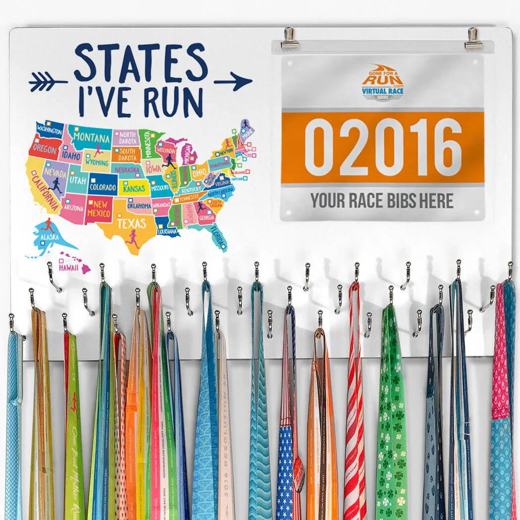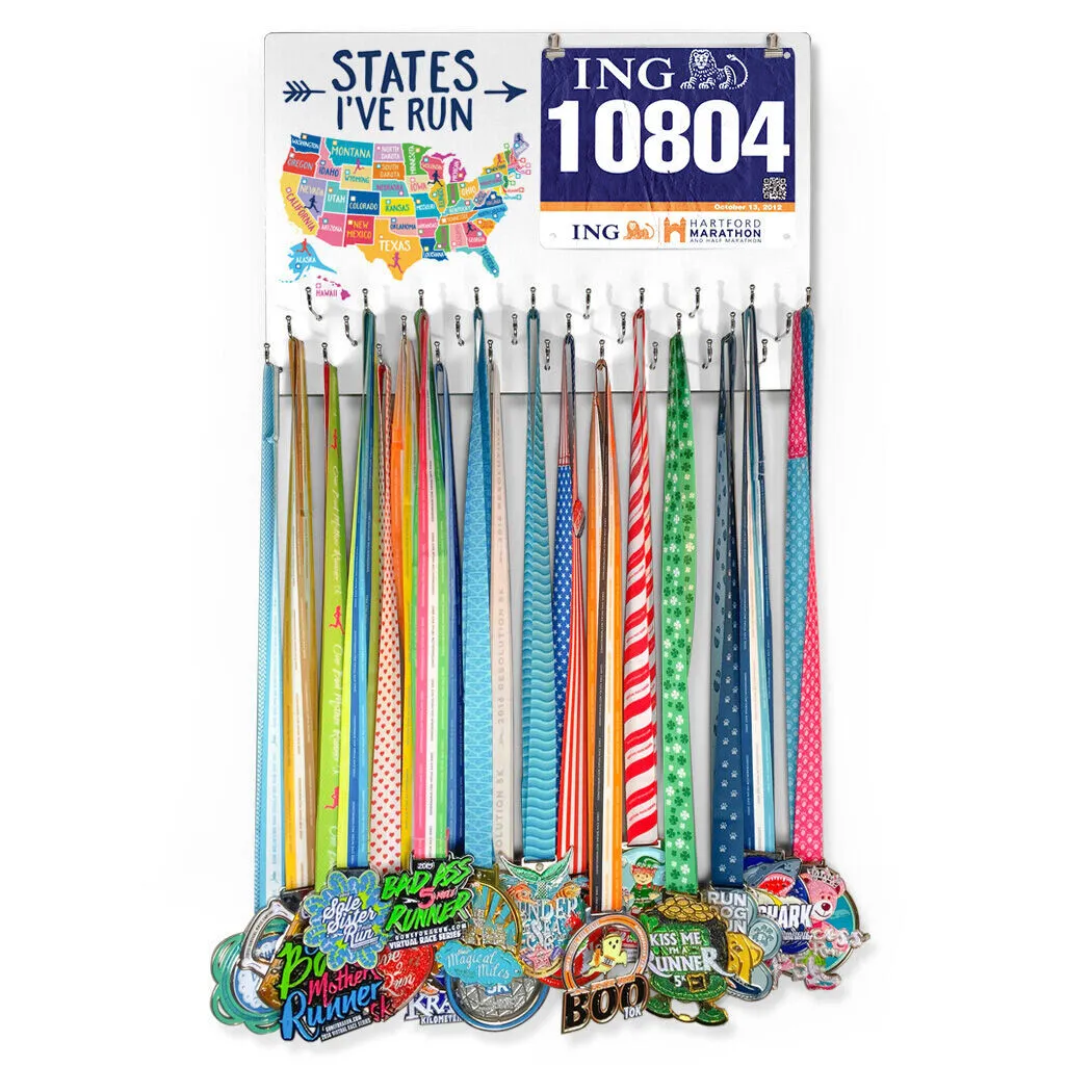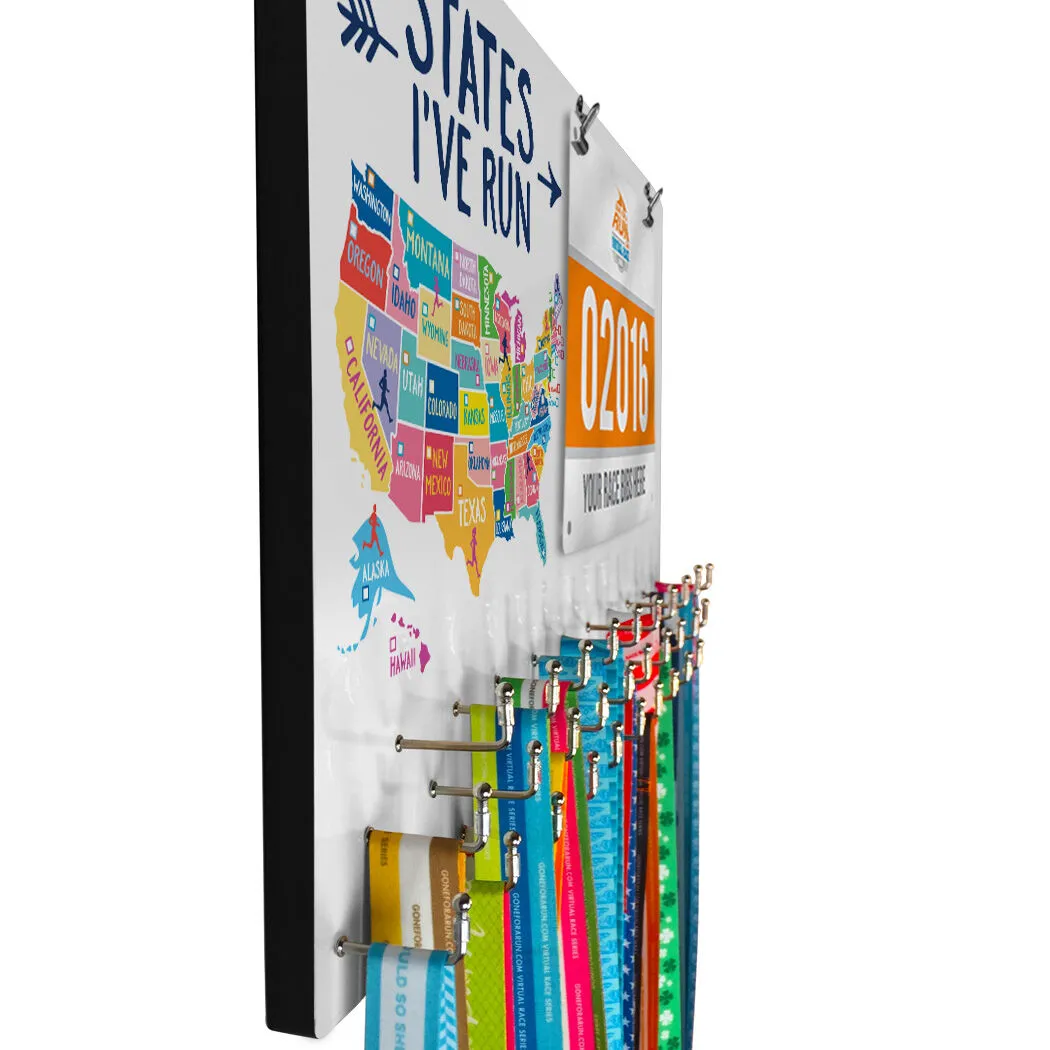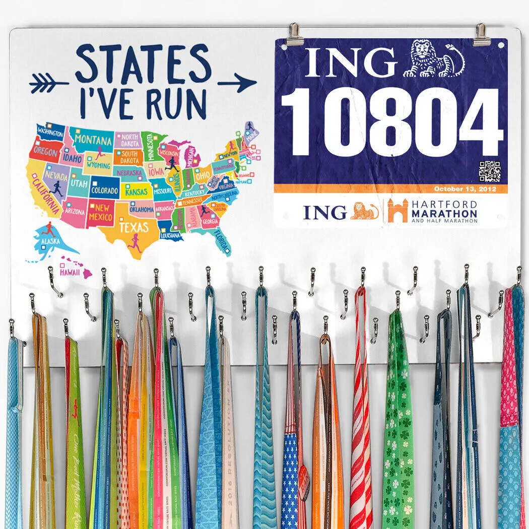 Running Large Hooked On Medals And Bib Hanger – States I’ve Run