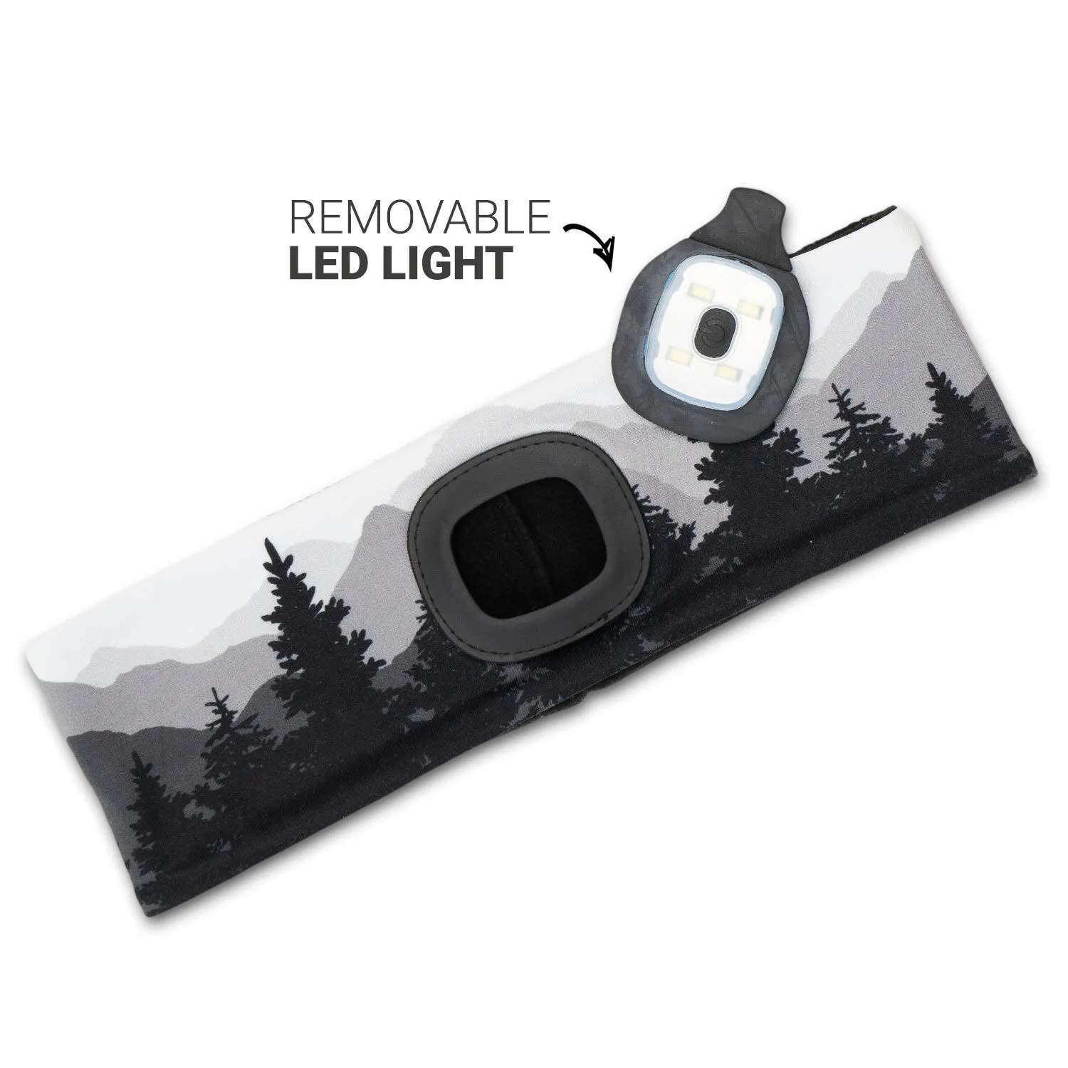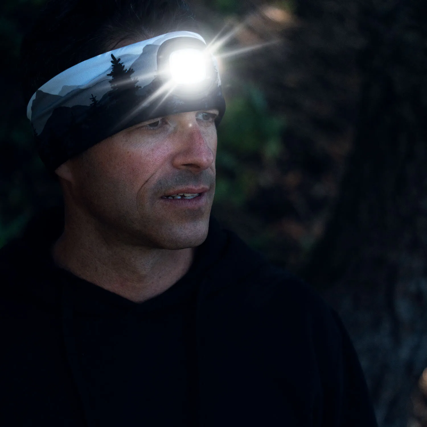 - Moisture-wicking microfiber polyester headband with fleece lining | removable and rechargeable LED light | reversible