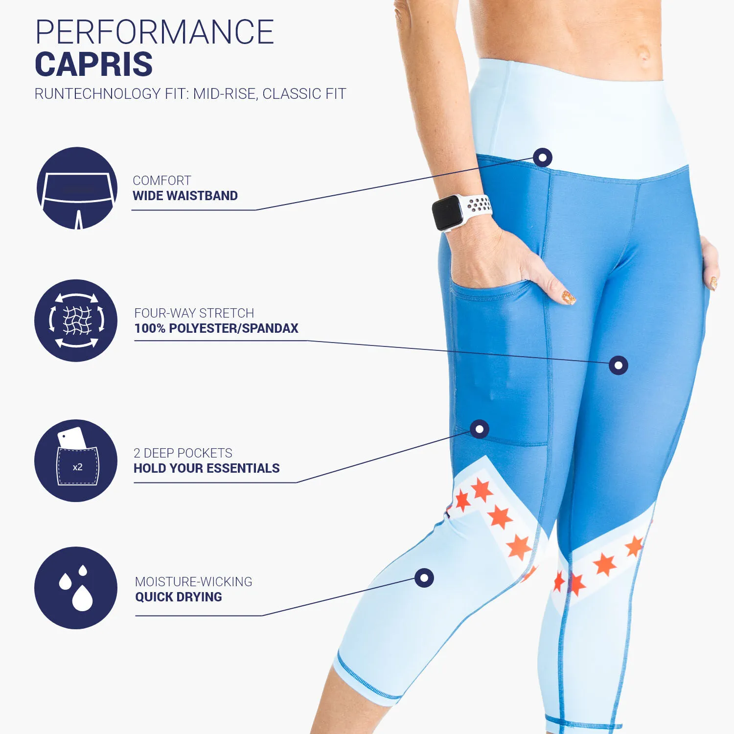 These performance capris are designed for your active lifestyle. The exclusive RunTechnology® performance fabric is designed to perform while providing ultimate comfort. The four-way stretch moisture wicking material, wide waistband, as well as the leg pockets for your essentials make these capris a top choice for athletes. These capris are equal parts function and fashion to fit any athletic activity and everyday active lifestyles.