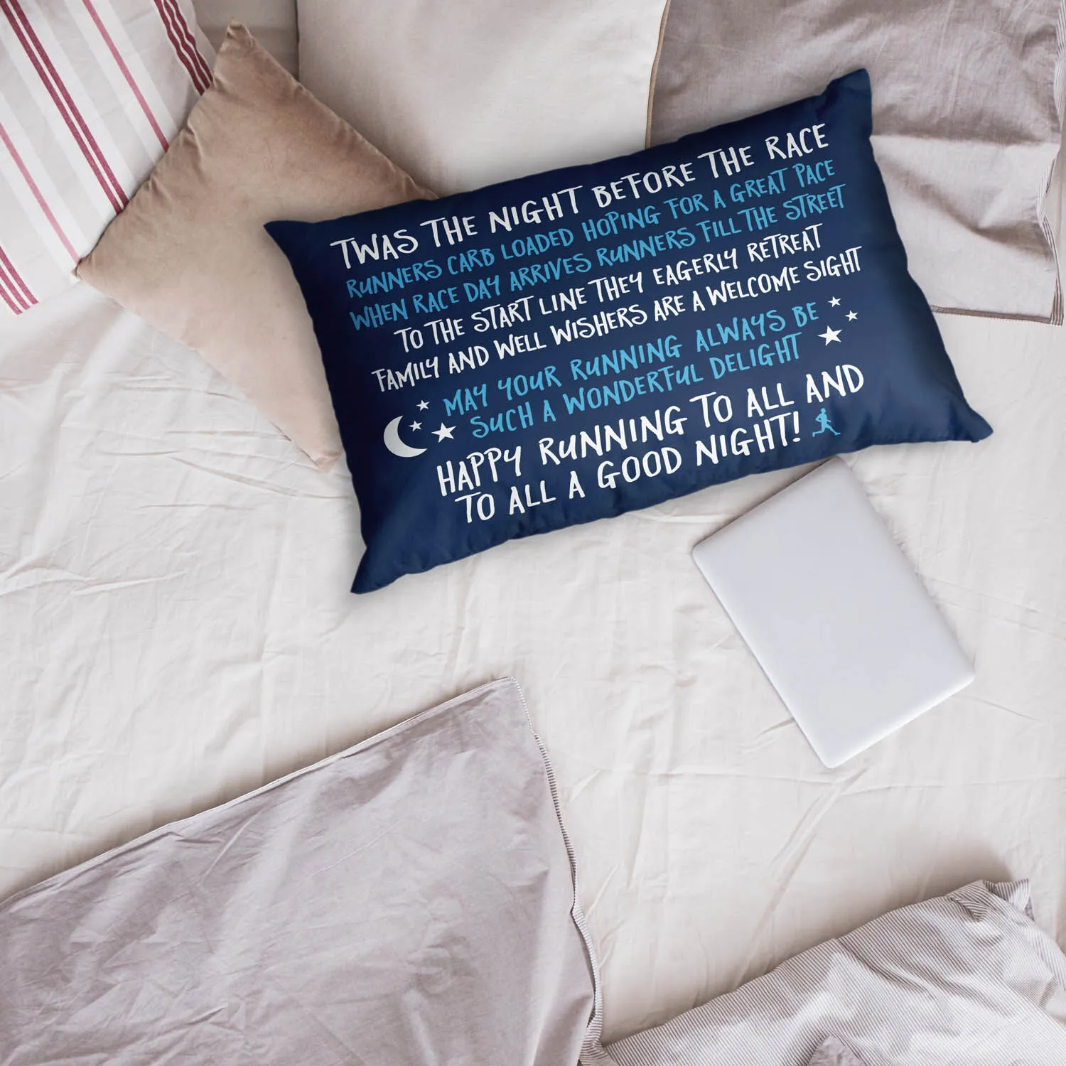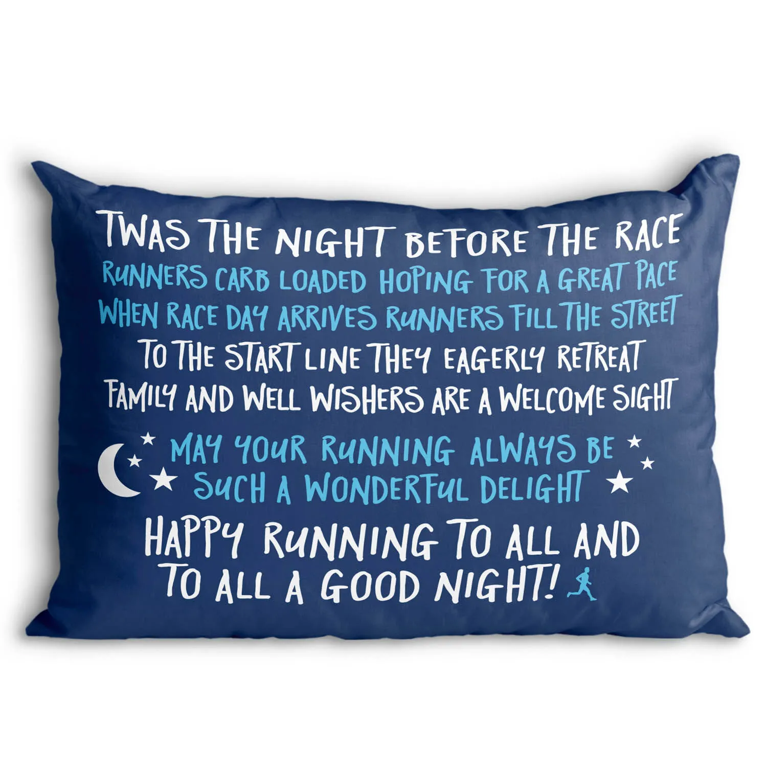 The perfect inspirational pillowcase for a dedicated runner who lives for the sport. The 30” X 21.5” pillowcase is made from soft polyester and fits most standard pillows. An excellent running gift for any occasion, including birthdays, holidays, promotion, or to celebrate a new PR. The comfortable “Twas the Night Before the Race” pillowcase is sure to be the perfect addition to any runner’s home.