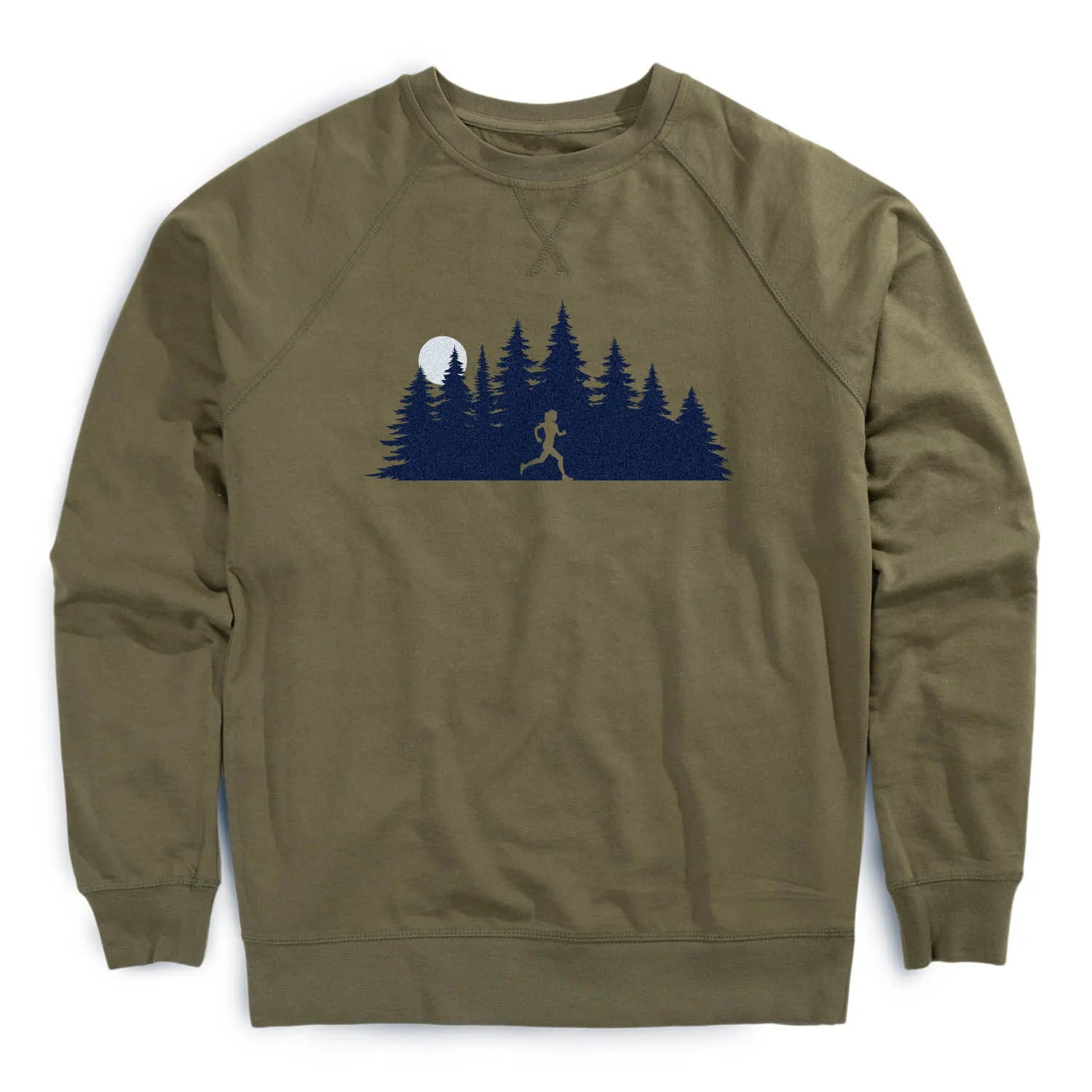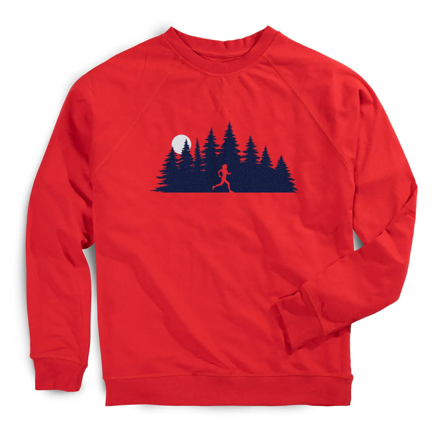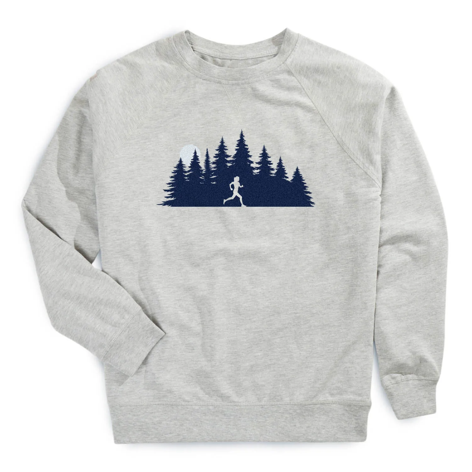 Show off your running spirit in our raglan crew neck pullover featuring a one-of-a-kind Moonlit Run design. Our pullover is made from 60% cotton and 40% polyester French terry fleece for soft and comfortable feel. This crew neck pullover offers a relaxed fit that pairs great with any choice of bottoms from leggings and athletic tights to jeans and shorts. The stylish pullover is perfect for everyday wear and an ideal running gift for any occasion.